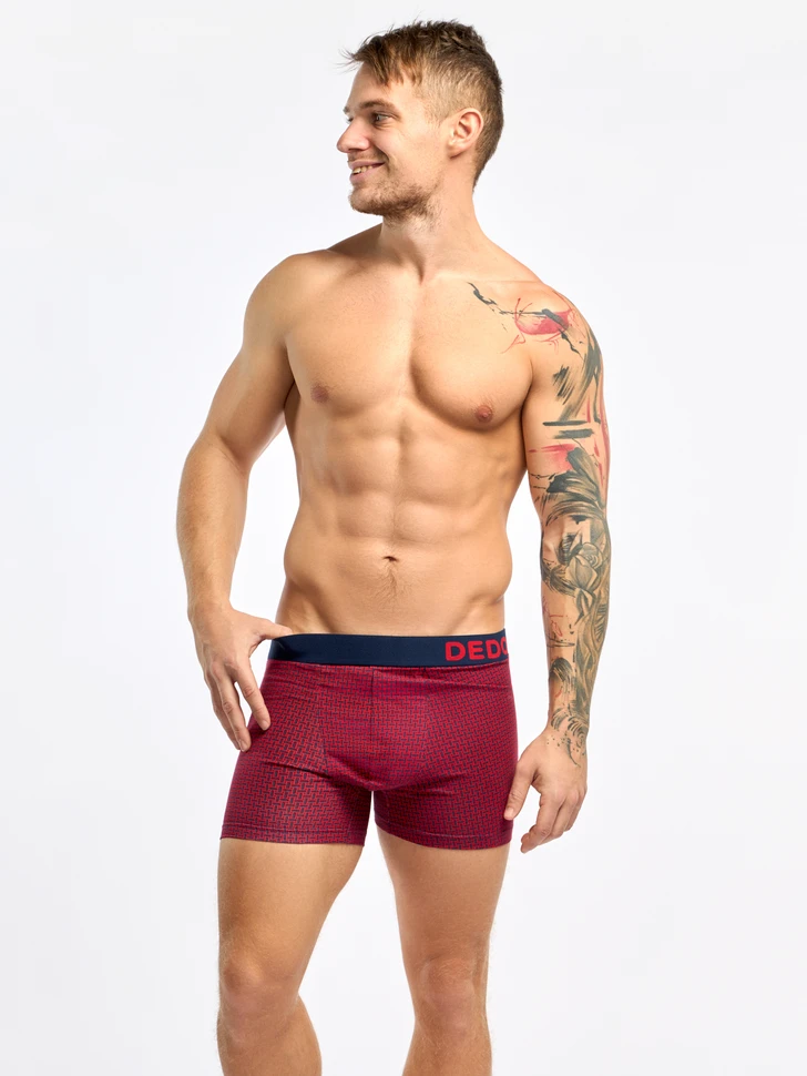 Boxer Homme Motif Jacquard Bleu & Rouge