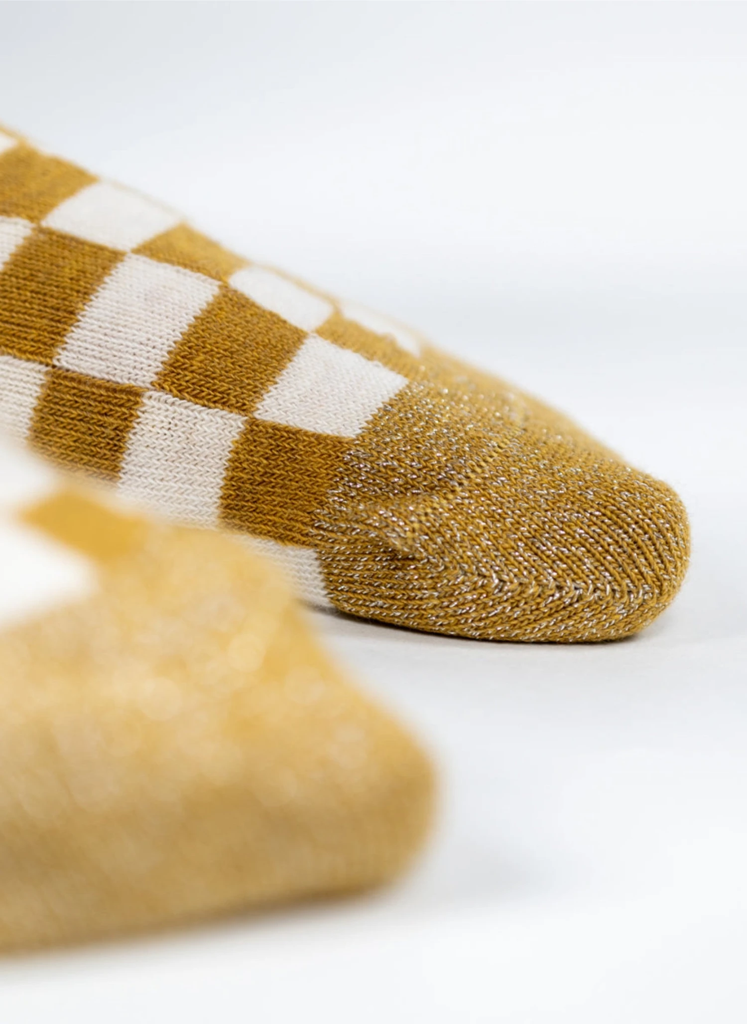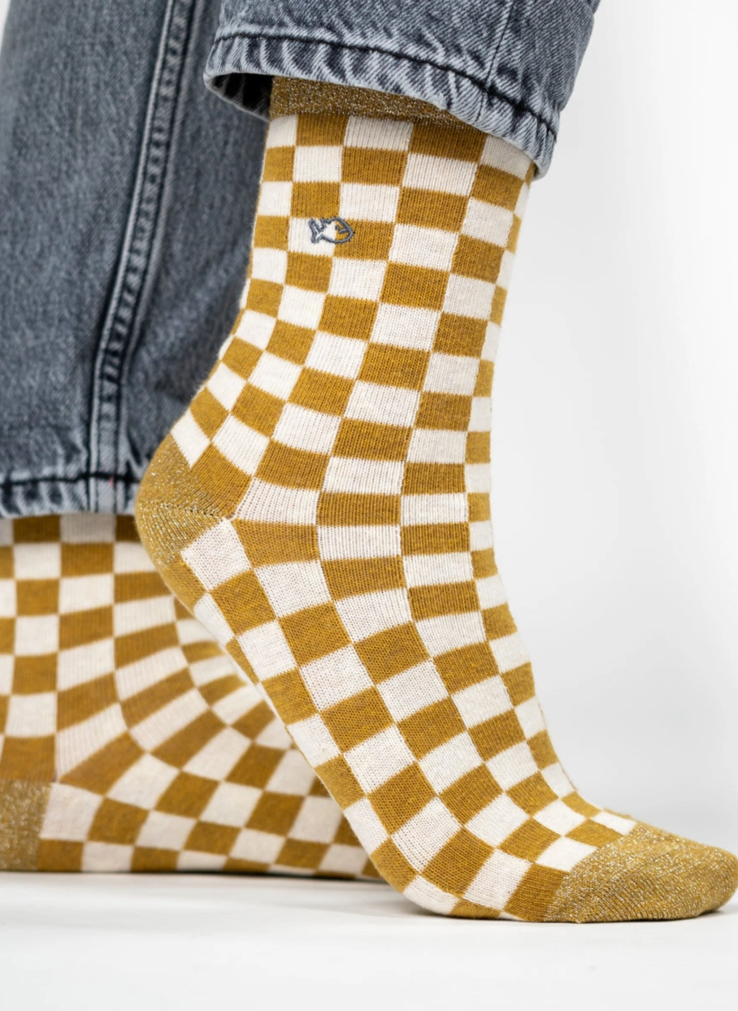 Apportez une touche d’originalité à votre tenue avec ces chaussettes à carreaux jaunes et blancs. Elles sont en coton peigné et remaillée à la main. Ces chaussettes sont confortables et durables.