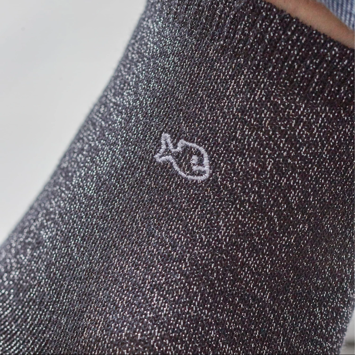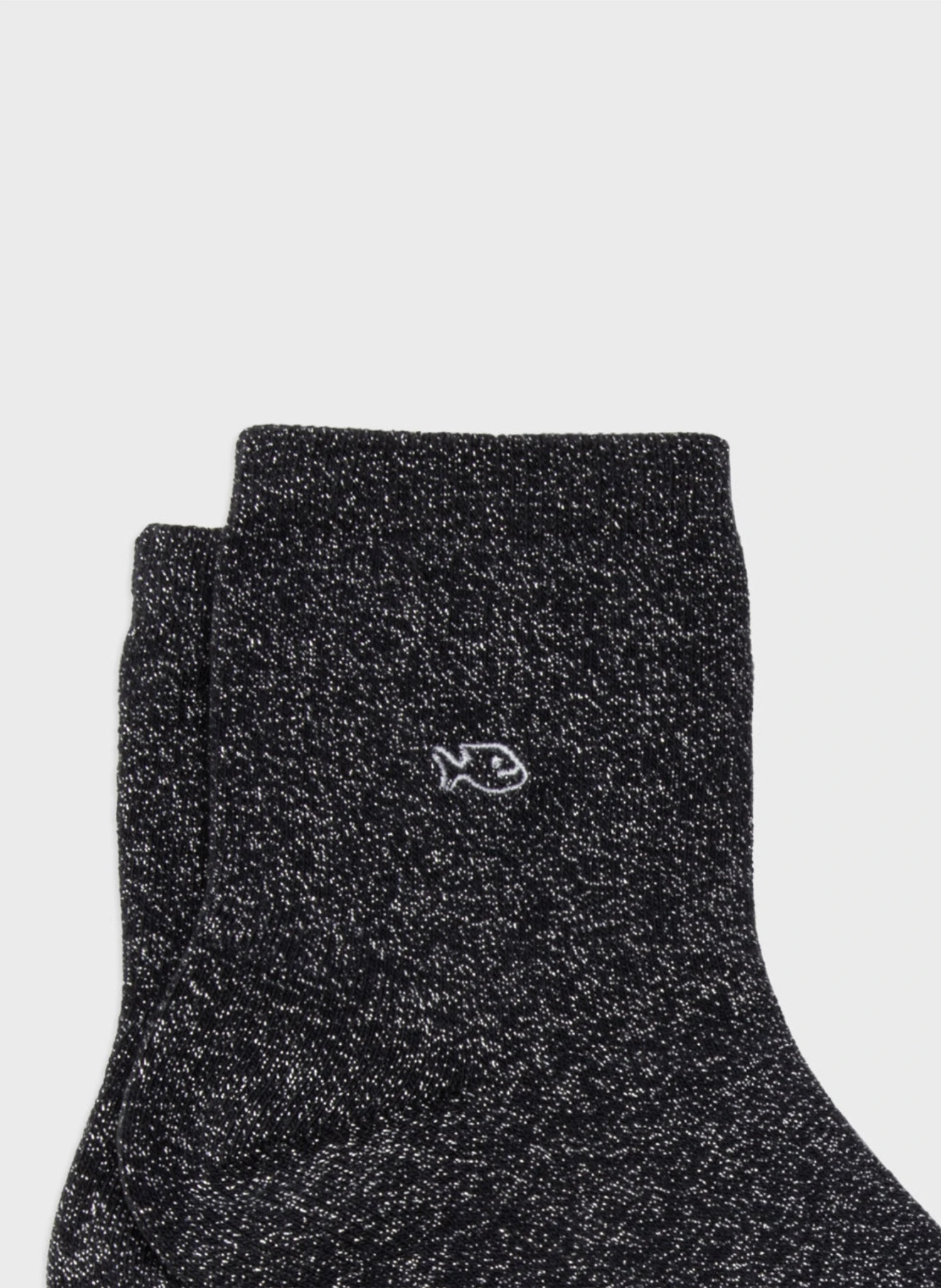 Apportez une touche d’originalité à votre tenue avec ces chaussettes pailletées noires. Elles sont en coton peigné et remaillée à la main. Ces chaussettes sont confortables et durables.
