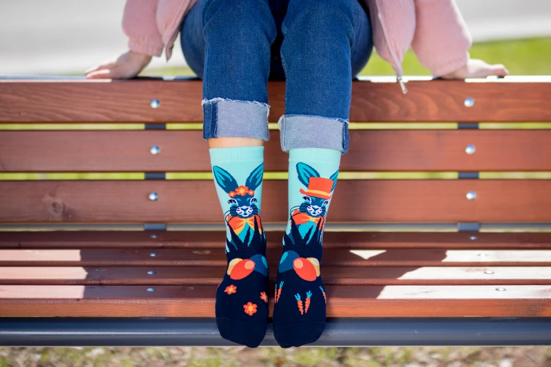 Voici LE lapin Bleue qui bosse une fois par an… mais avec panache. Ces chaussettes rendent hommage au plus célèbre livreur de chocolats : toujours en retard, souvent stressé, mais terriblement mignon.