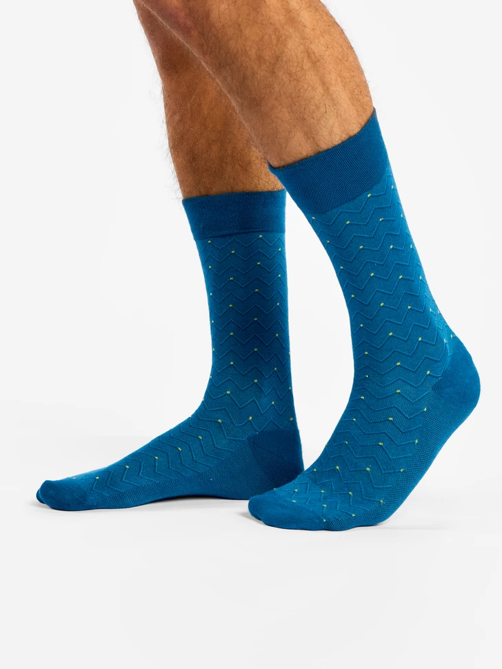 Chaussettes Bambou Jacquard Bleues Et Citron Vert