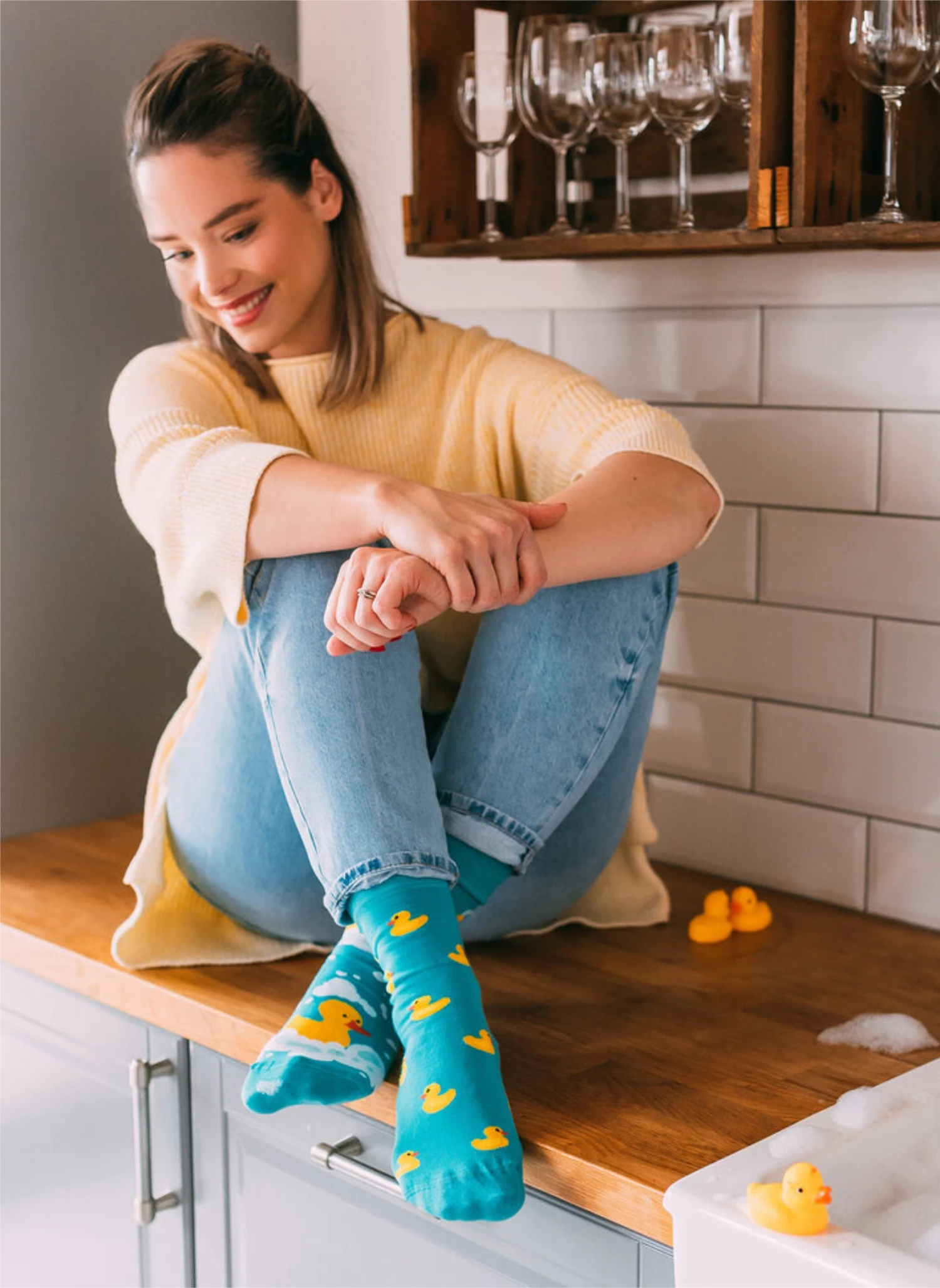 Il est impossible pour vous de prendre un bain sans votre ami palmé ! Alors même en sortant du bain, pensez à lui toute la journée en enfilant ces chaussettes drôles et originales. Elles sauront vous apportez la joie et la bonne humeur au quotidien.