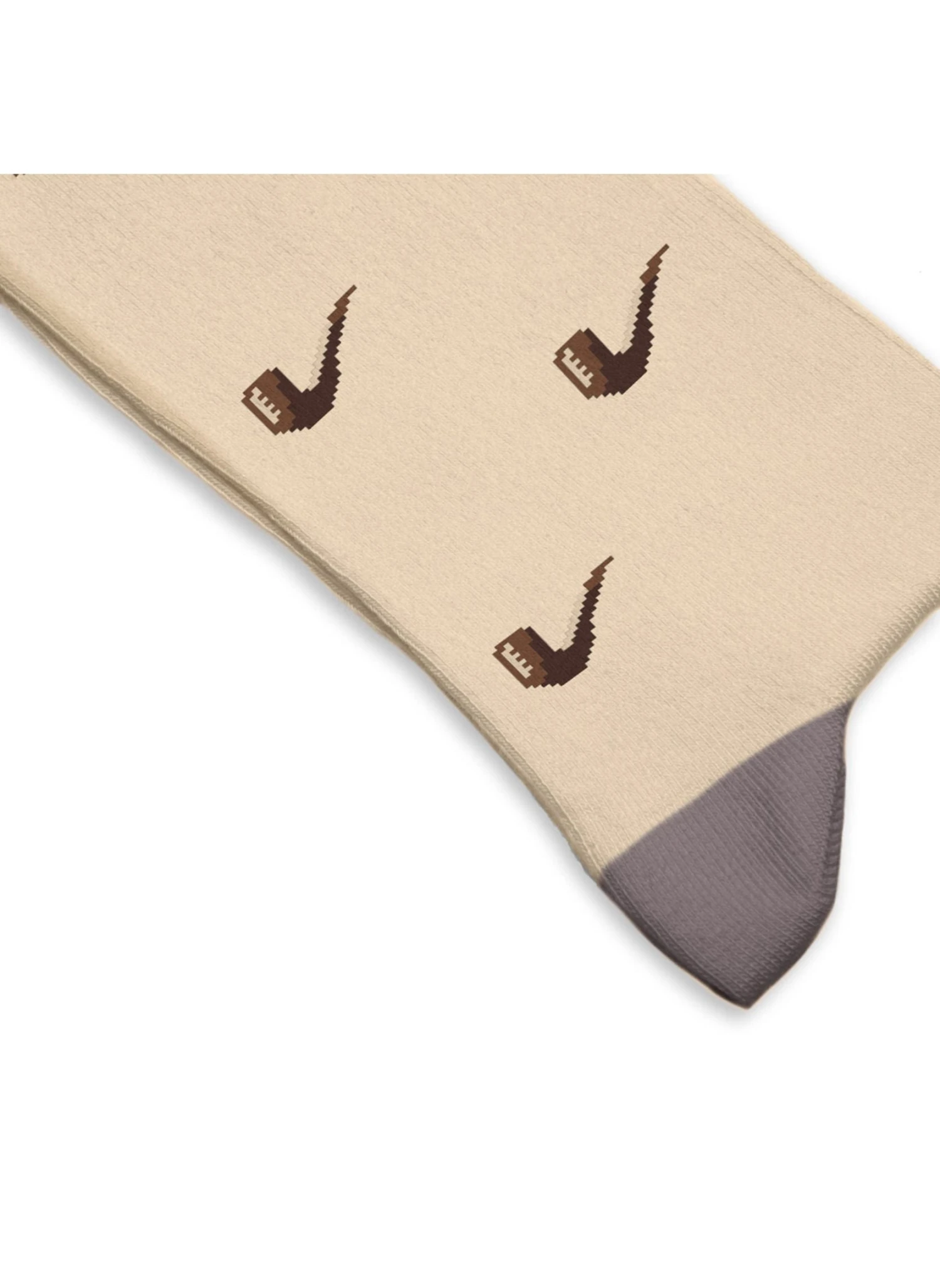 Retrouvez sur ces chaussettes la célèbre pipe de René Magritte, qui n’en est pas une au final. Cet élément fait partie du tableau « La Trahison des images » ou cette phrase légende la pipe.