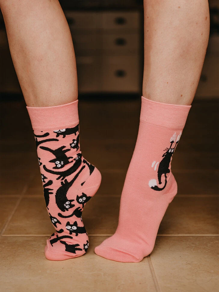 On dit qu’un chat noir qui croise votre chemin porte malheur… mais en réalité, il a juste une destination ! 😀 Ceux de ces chaussettes originales roses, eux, savent exactement où ils vont : tout droit dans votre garde-robe. Avec leurs motifs espiègles et leur teinte joyeuse, ils sont là pour chasser les idées noires et illuminer vos journées, un pas après l’autre. Un brin de fantaisie, beaucoup de douceur, et zéro superstition !