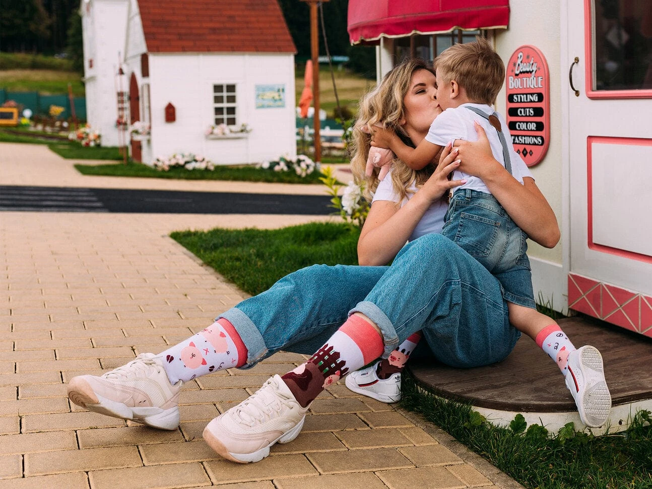 Il est scientifiquement prouvé que les porcelets aiment ces chaussettes originales et dépareillées. Mieux que la boue pour être de bonne humeur.