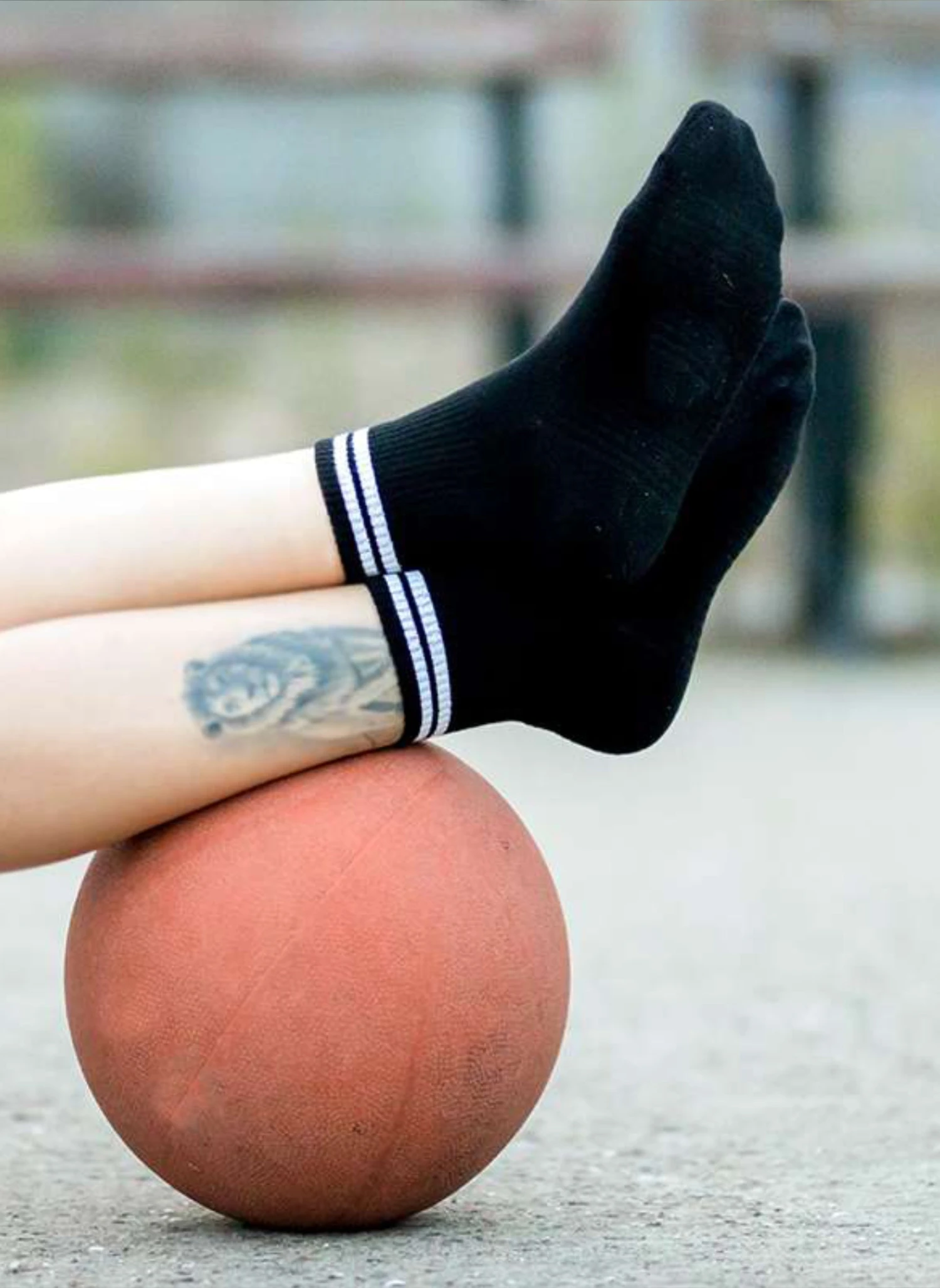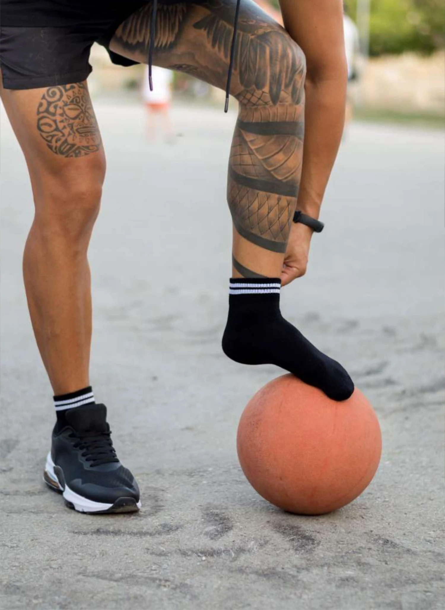 Chaussettes Courtes Active Day Noires Bandes Blanches