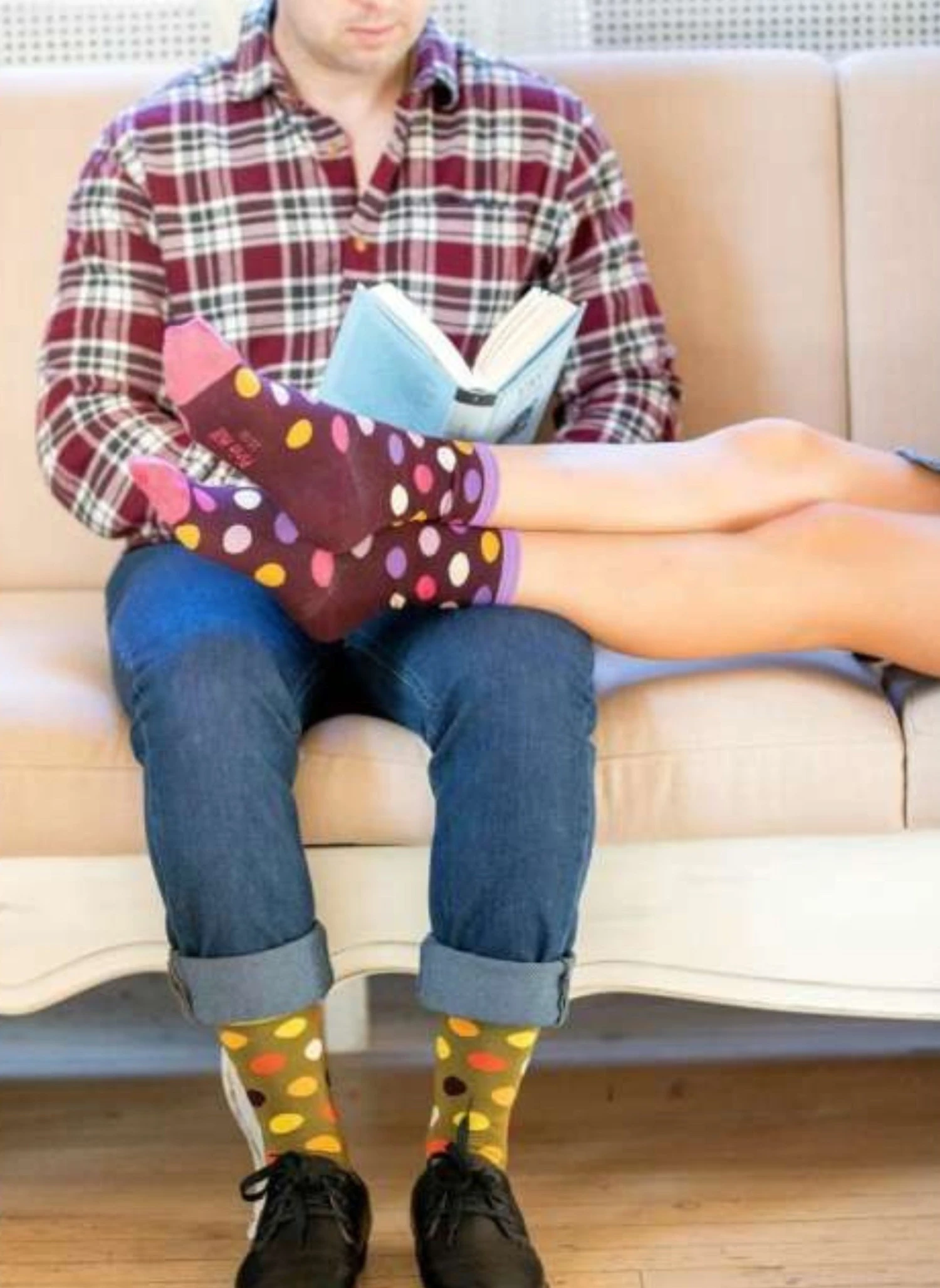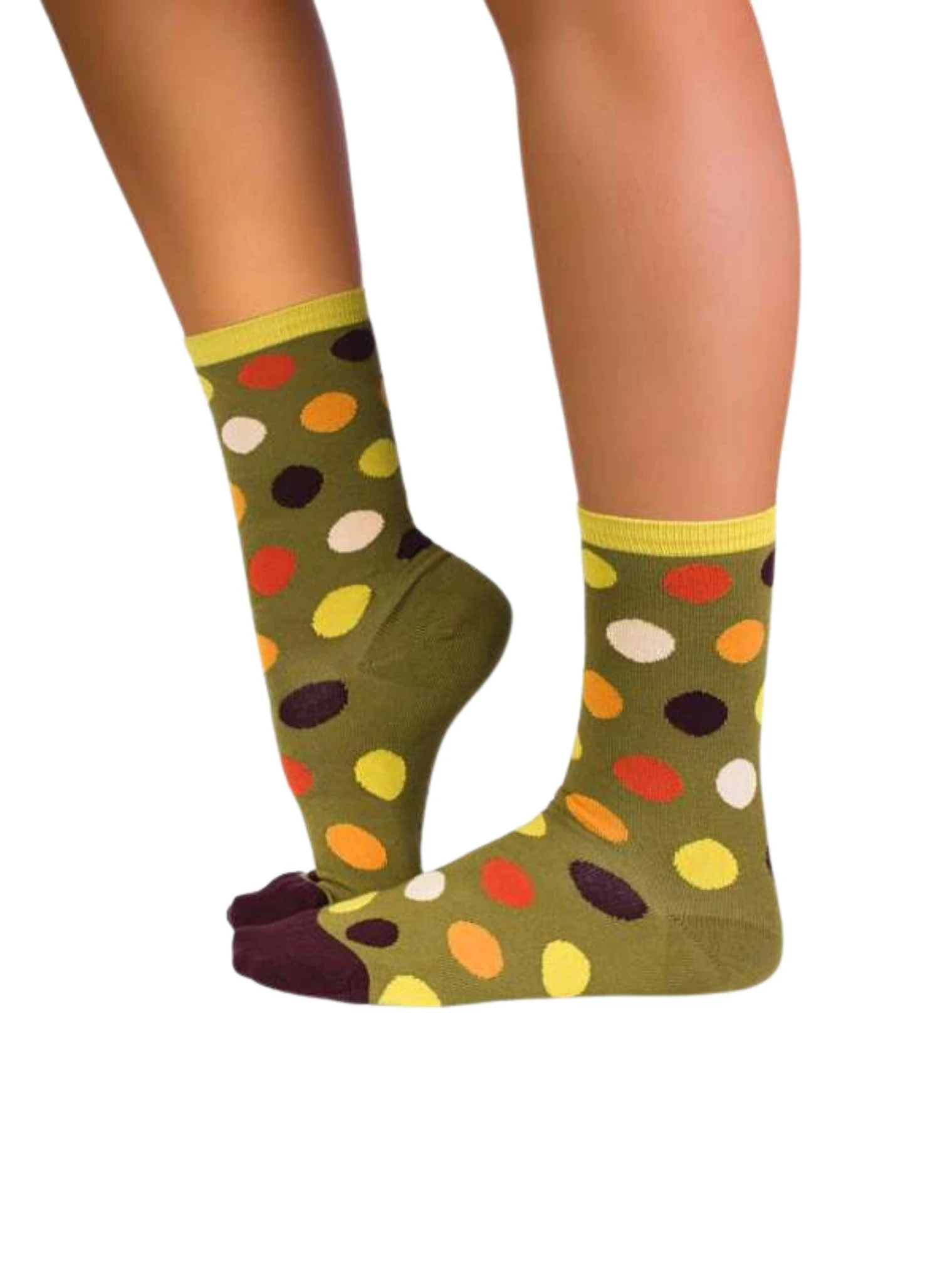 Ces chaussettes à pois kaki sont faites pour vous ! Avec leur look mi-militaire, mi-festif, elles vous permettront d’infiltrer n’importe quelle réunion de famille ou apéro entre amis sans jamais compromettre votre style. Les pois ? Ce sont des petits projecteurs de fun qui disent : « Je suis sérieux… mais pas trop ».
