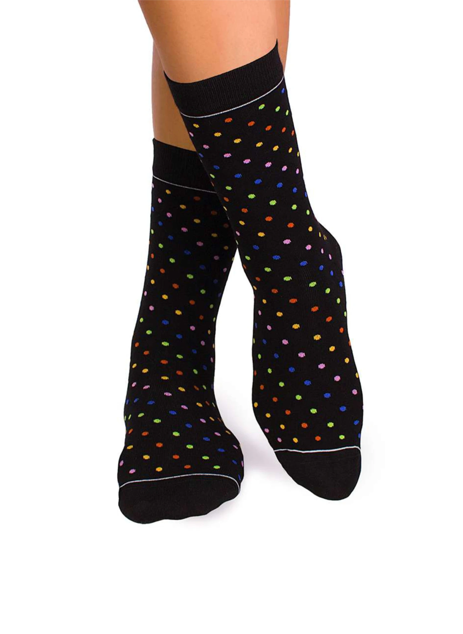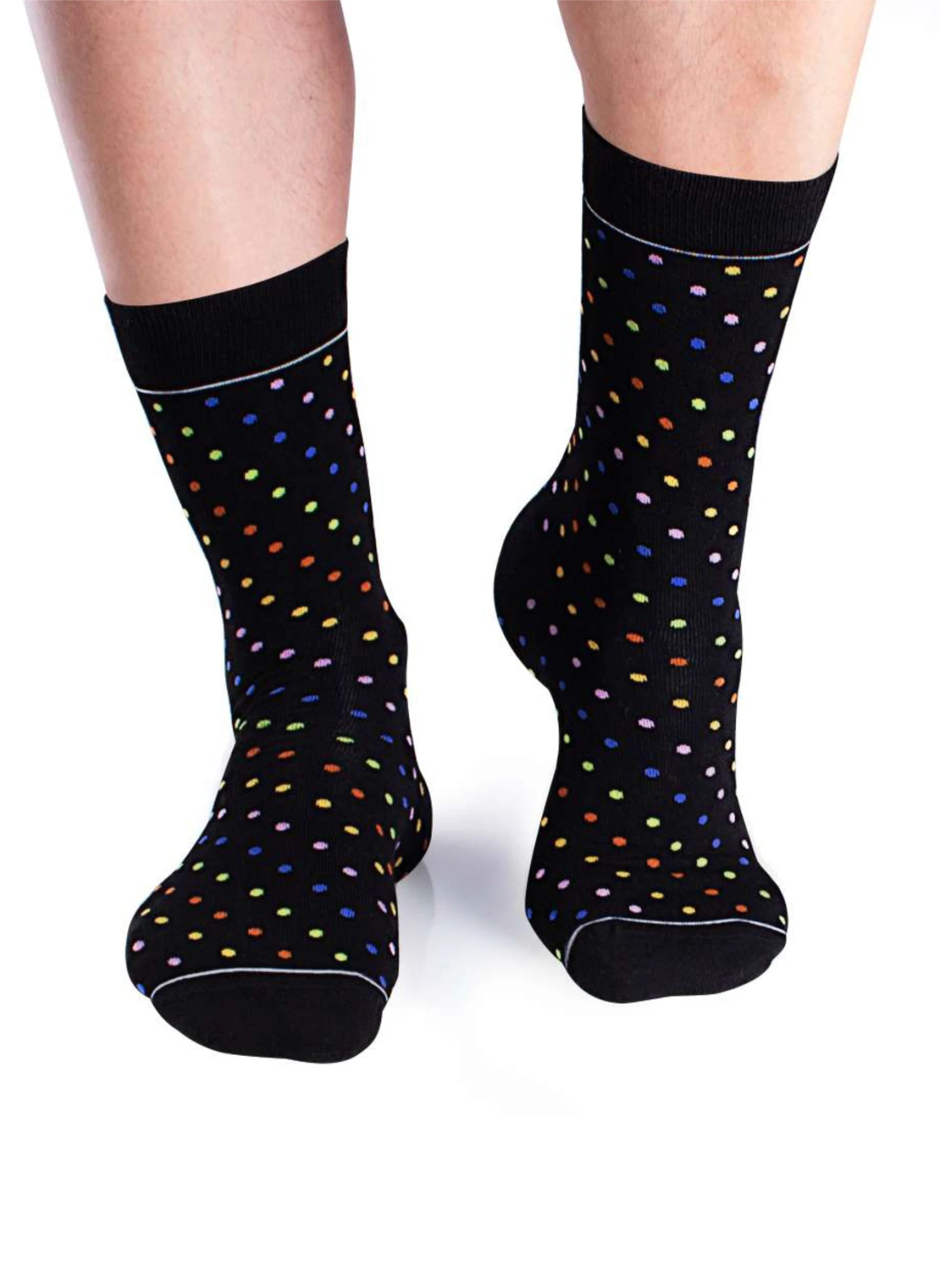 Ces chaussettes en bambou noires avec des pois sont excellentes pour un cadeau. La fibre de bambou les rend extrêmement douces et agréables au toucher, tandis que les jolis motifs s’intègrent parfaitement dans tout les moments.