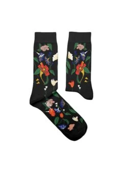 Avec ces chaussettes, mettez à vos pieds des hémérocalles, iris, lilas, volubilis, capucines, roses et tulipes… inspirés de la nature morte de l’artiste Severin Roesen. Une somptueuse représentation de fleurs de toutes saisons.