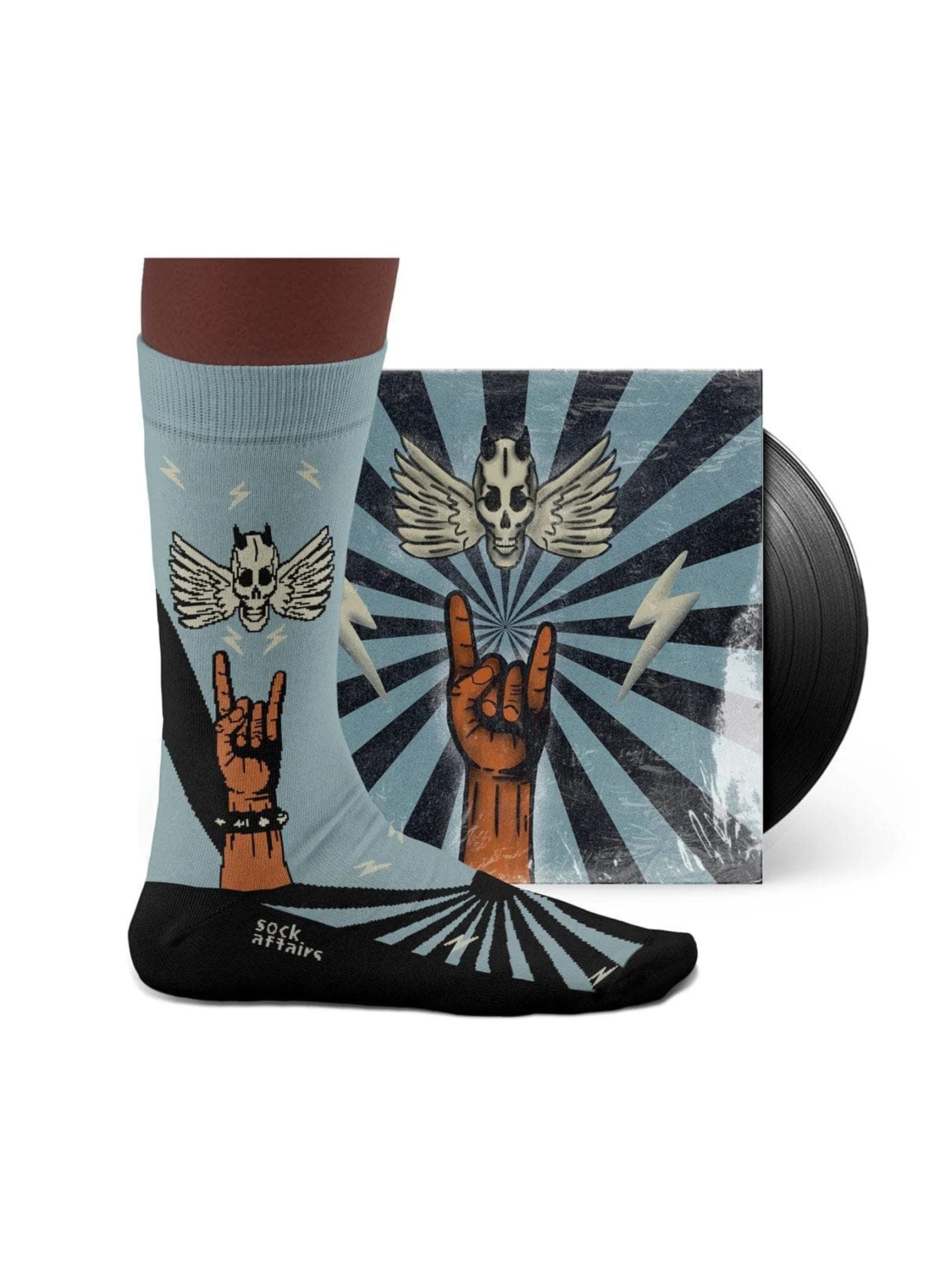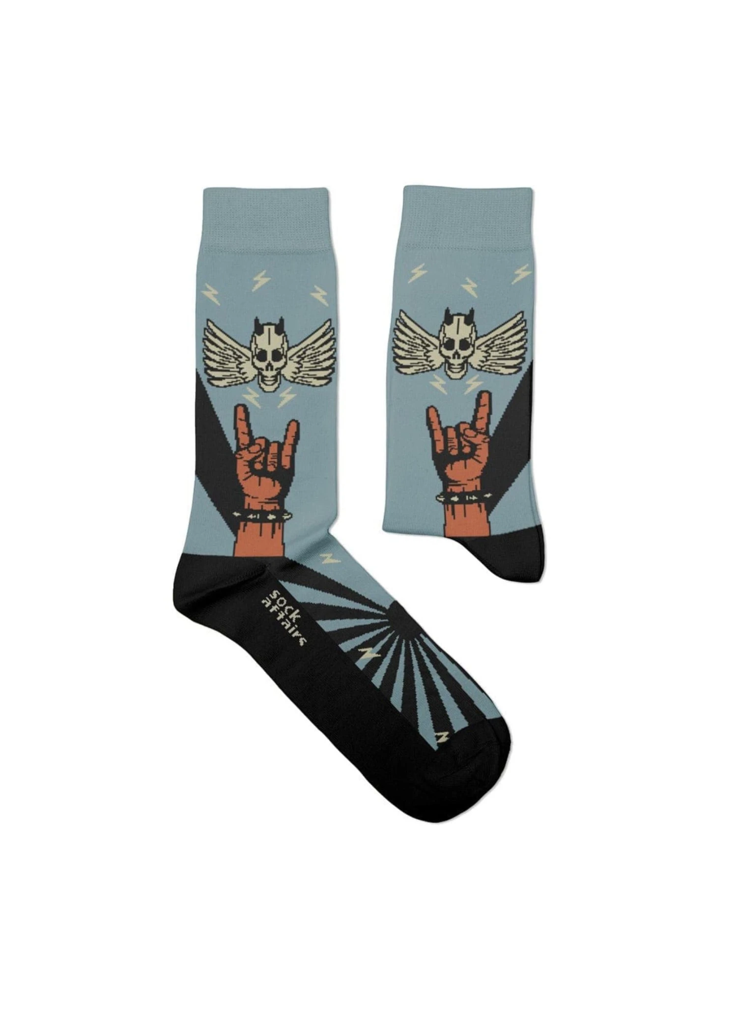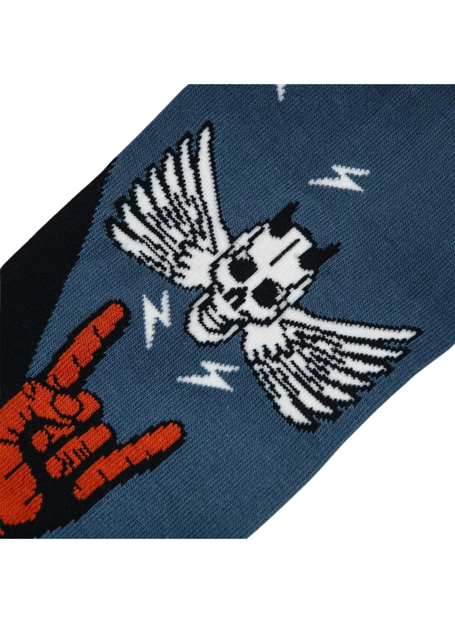 Recevez-vous des regards mortels de la part de non-initiés lorsque vous professez votre amour ou que vous commencez à headbanger sur une musique forte, agressive et potentiellement satanique ? Les chaussettes Flying Skull ne conviennent qu’aux métalleux chevronnés, ceux qui ne craignent ni le noir ni la Bête. Il est conseillé à tous les autres de s’en tenir aux motifs d’ananas et de flamants roses.🤘💀