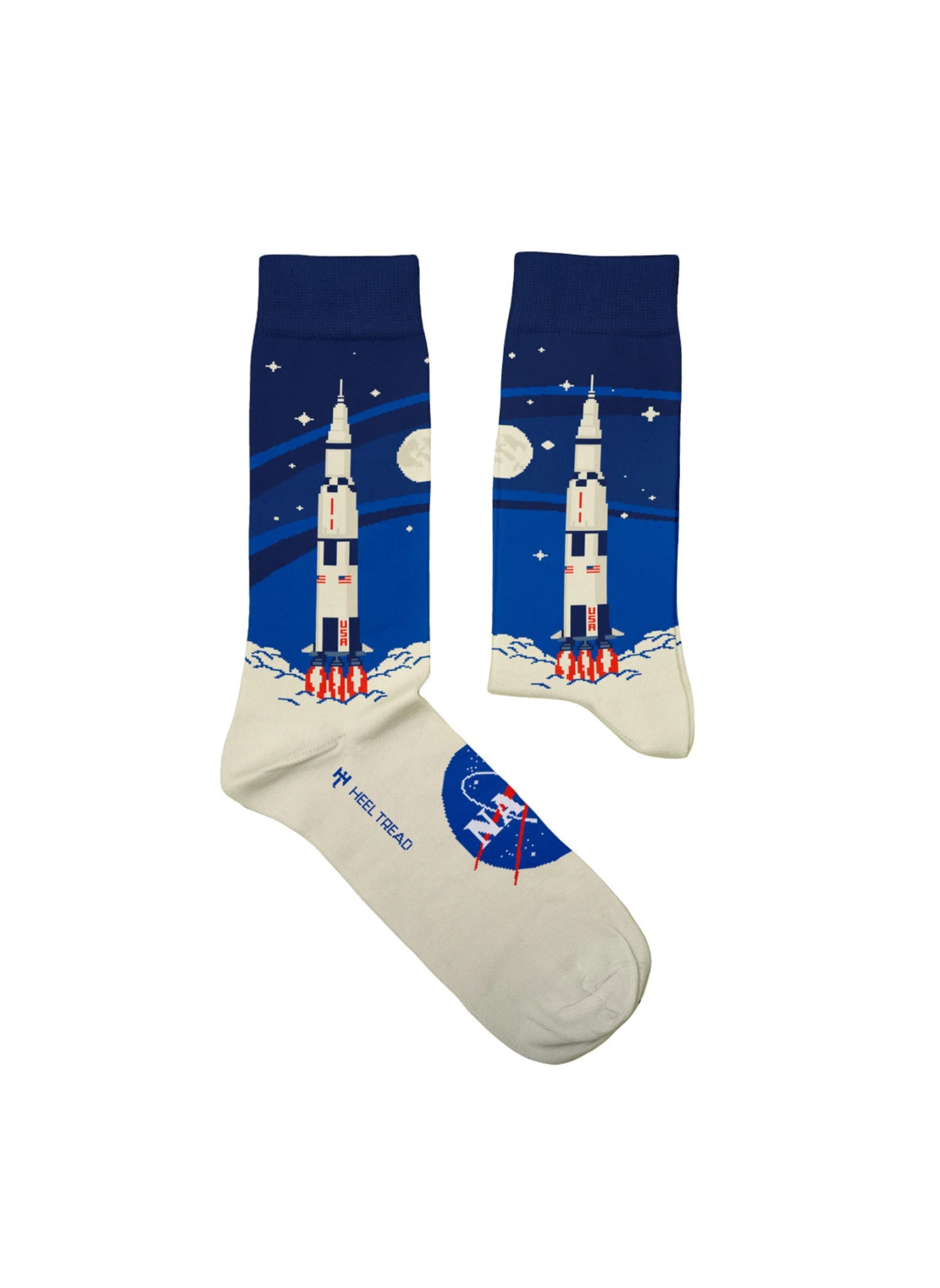 Retrouvez sur ces chaussettes le lanceur Saturn V de la NASA.
