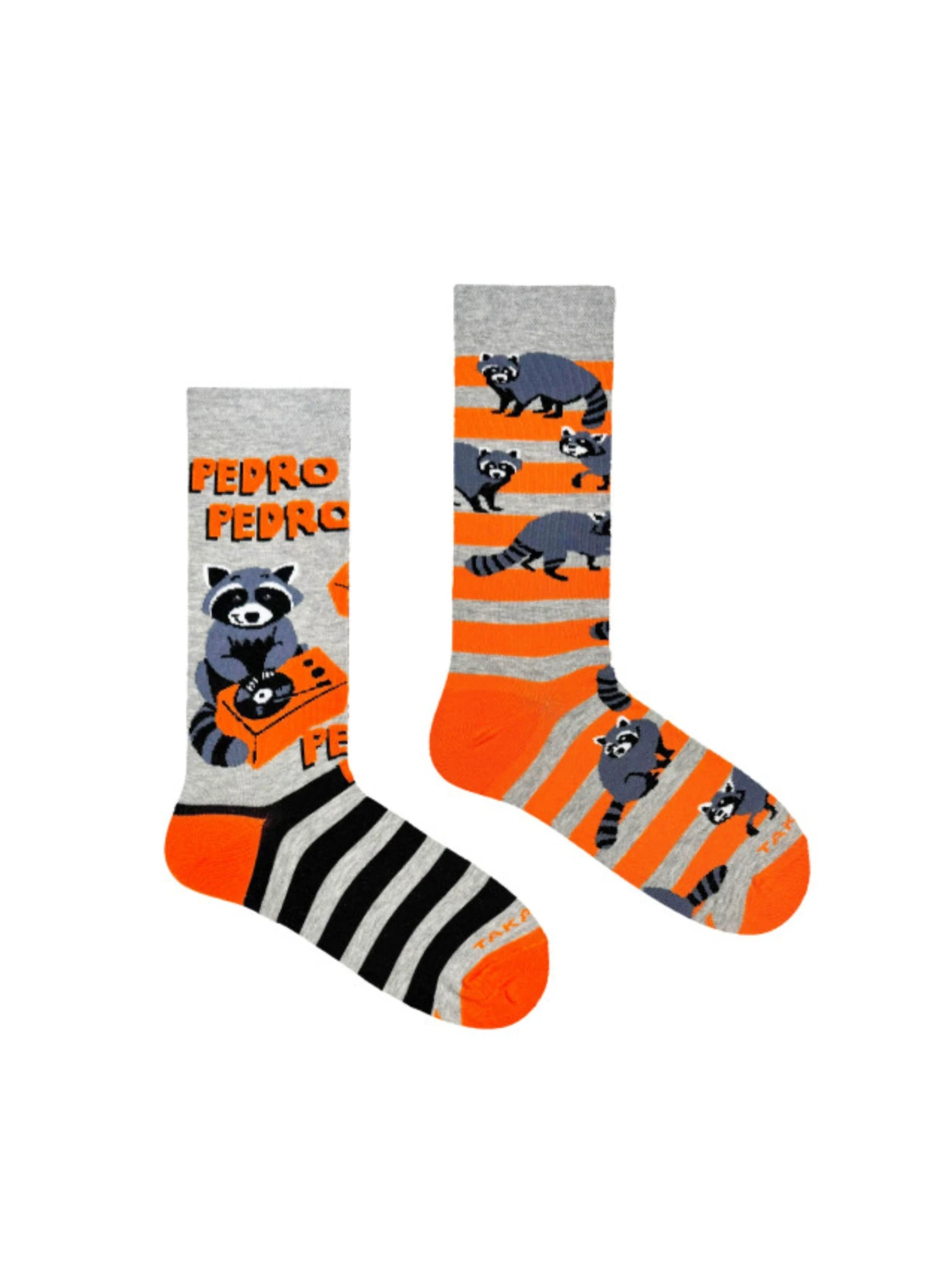 Voici Pedro, raton laveur de profession, voleur de cœurs à mi-temps. Toujours en train de fouiller là où il ne faut pas, Pedro s’est maintenant faufilé jusque sur vos chaussettes. Et il ne compte pas repartir.