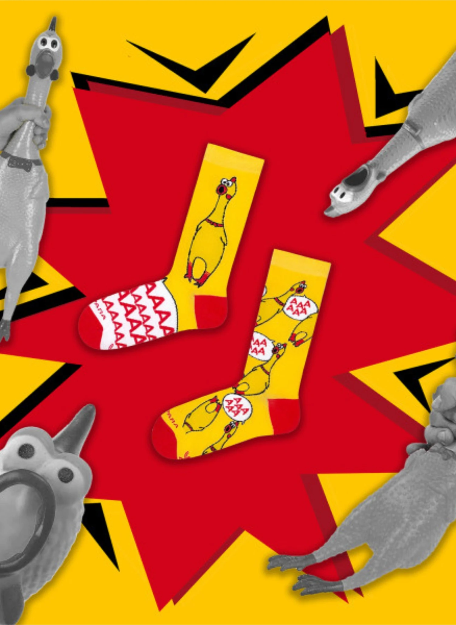 Confortables, colorées et complètement barrées, ces chaussettes sont parfaites pour courir après les œufs… ou fuir une poule furax.