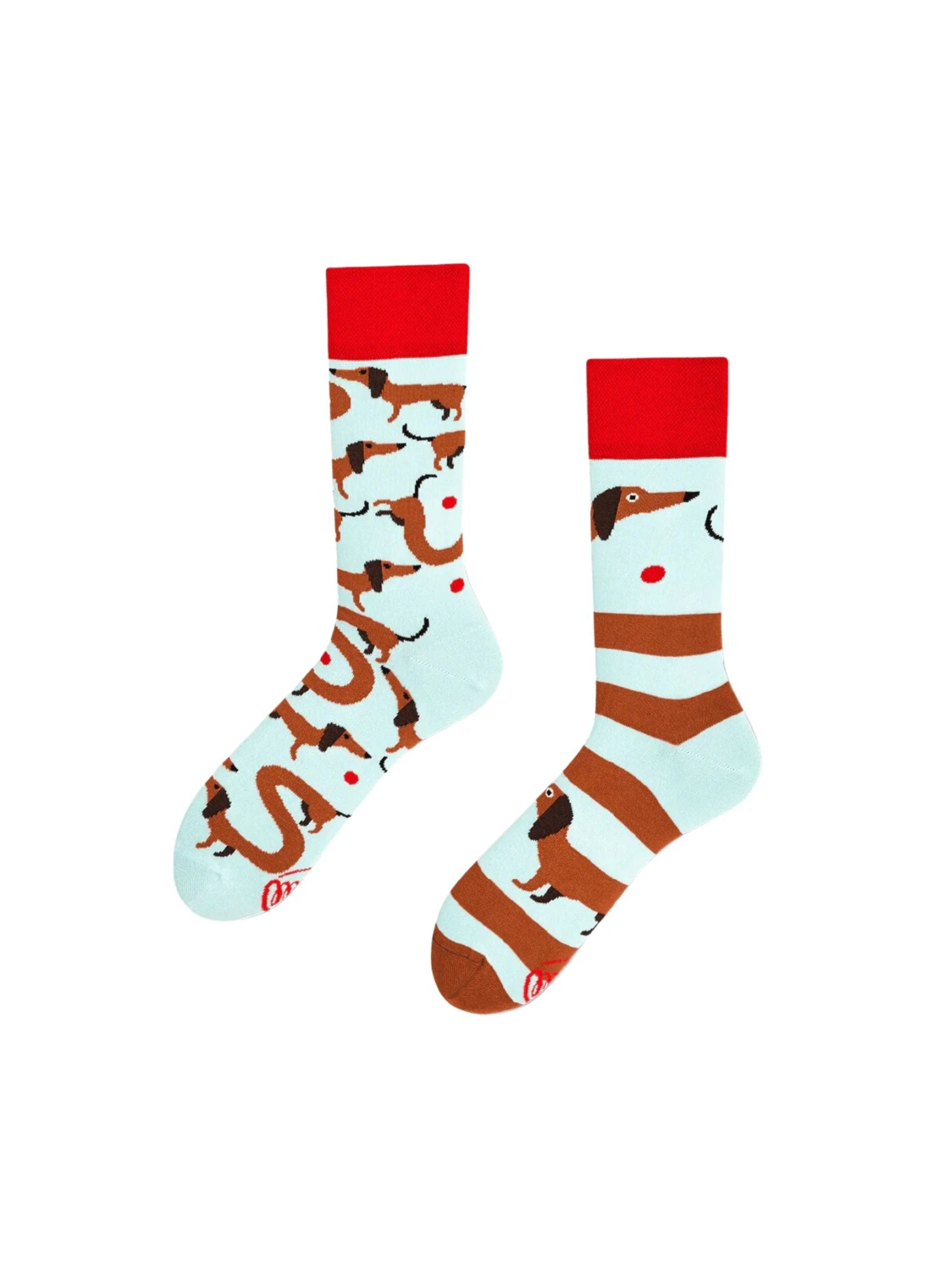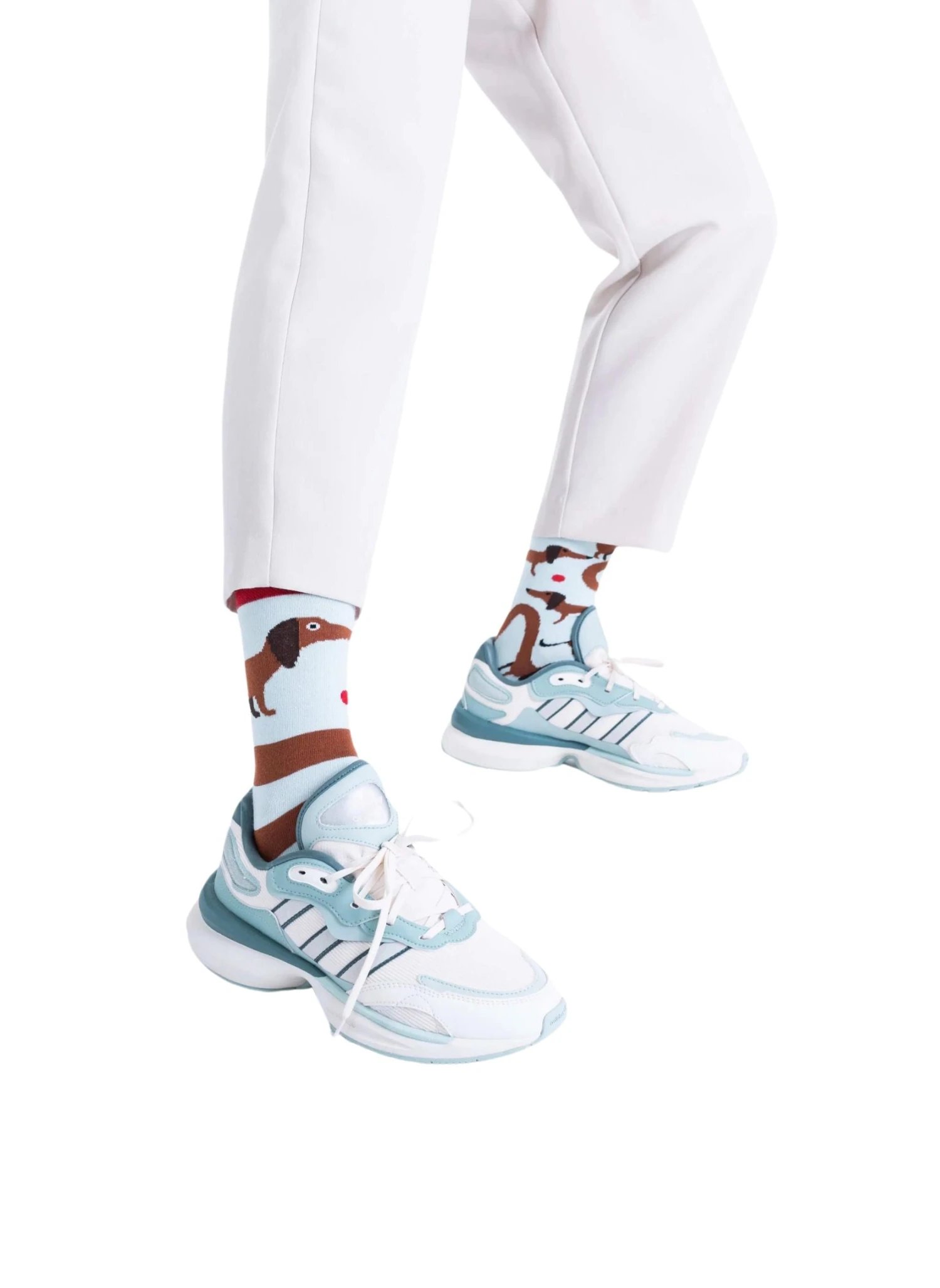 Affichez votre passion pour les teckels avec ces chaussettes en coton mélangé, arborant un motif Teckel Saucisse ludique sur un fond bleuté. Alliant confort et style, elles sont idéales pour ceux cherchant à ajouter une touche amusante et originale à leur tenue.