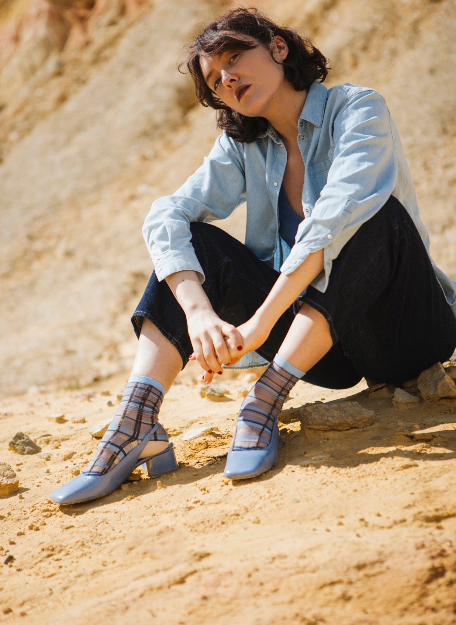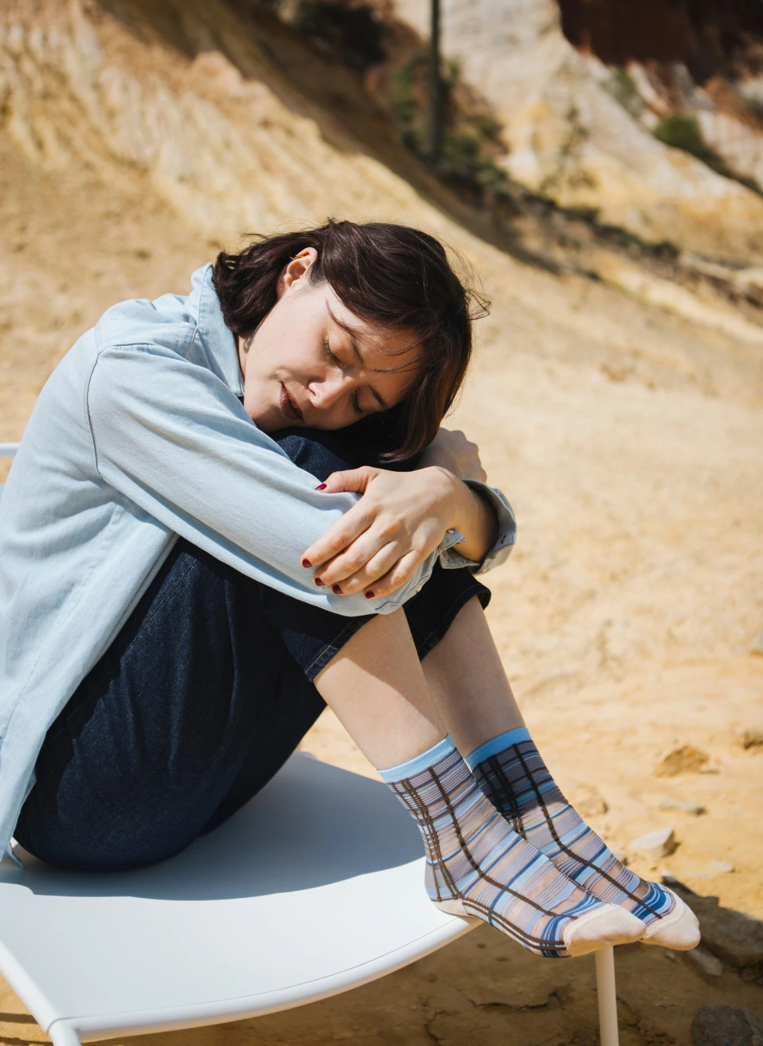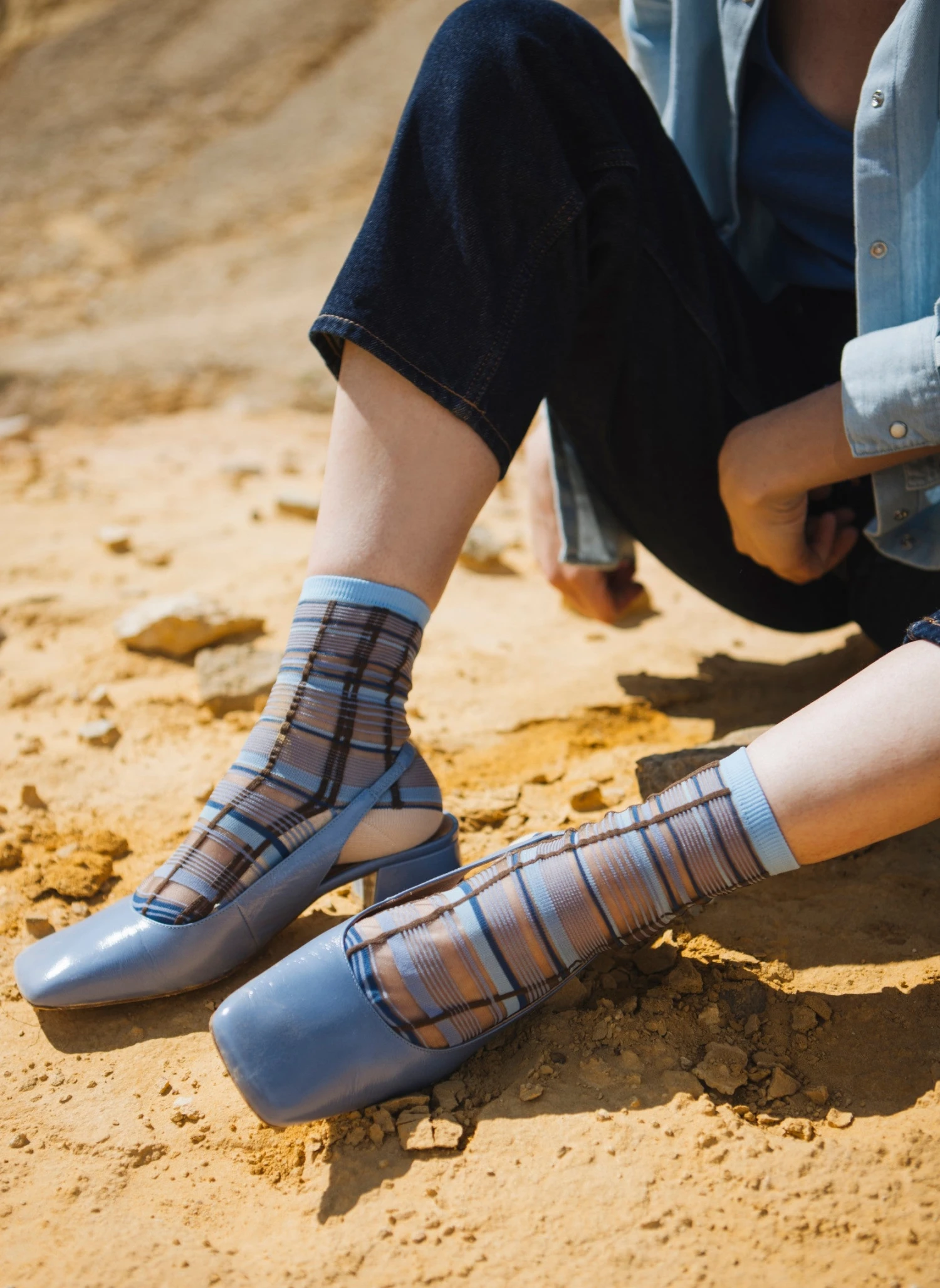 Prenez le large et roulez sur les routes infinies de l’ouest américain avec ces chaussettes. Une paire aux motifs géométriques dont les teintes bleues vous vaudront de jolis compliments. Accessoirisez-là avec un total look en denim.