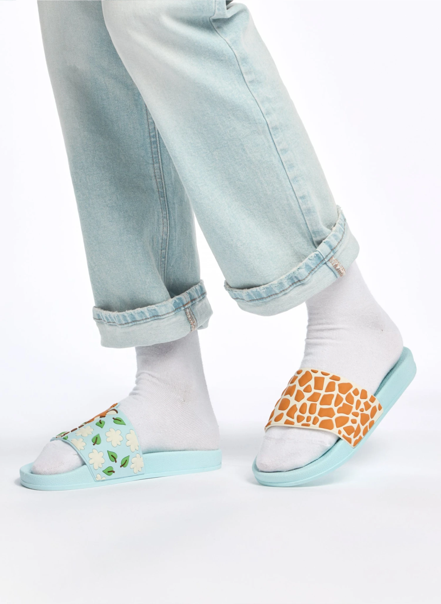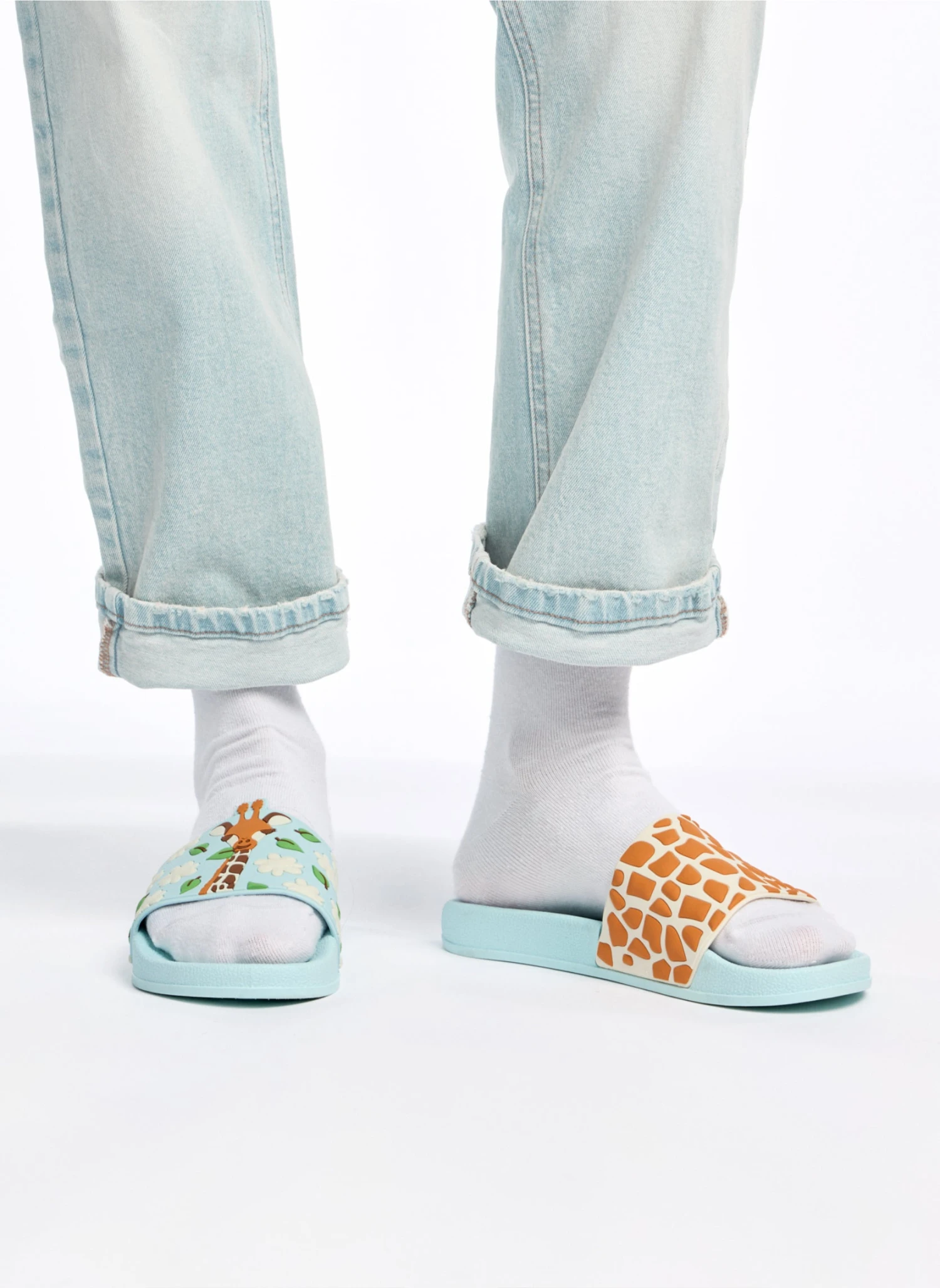 Saviez-vous qu’il est pratiquement impossible de trouver deux girafes avec le même motif de pelage ? Enfilez une paire de ces claquettes amusantes. Elles sont unique, mais ensemble, elles forment une paire parfaite, vous offrant confort et bonne humeur.