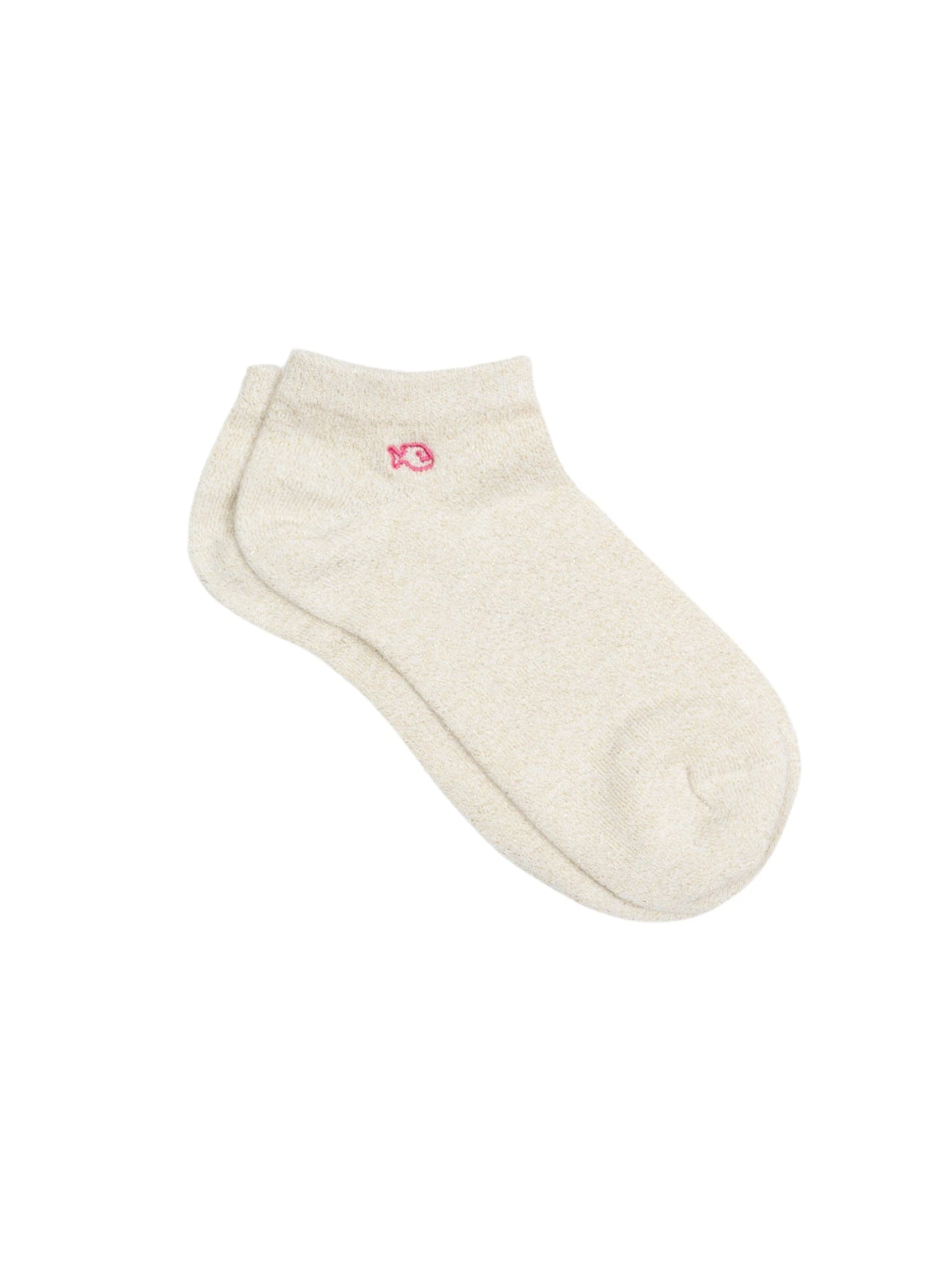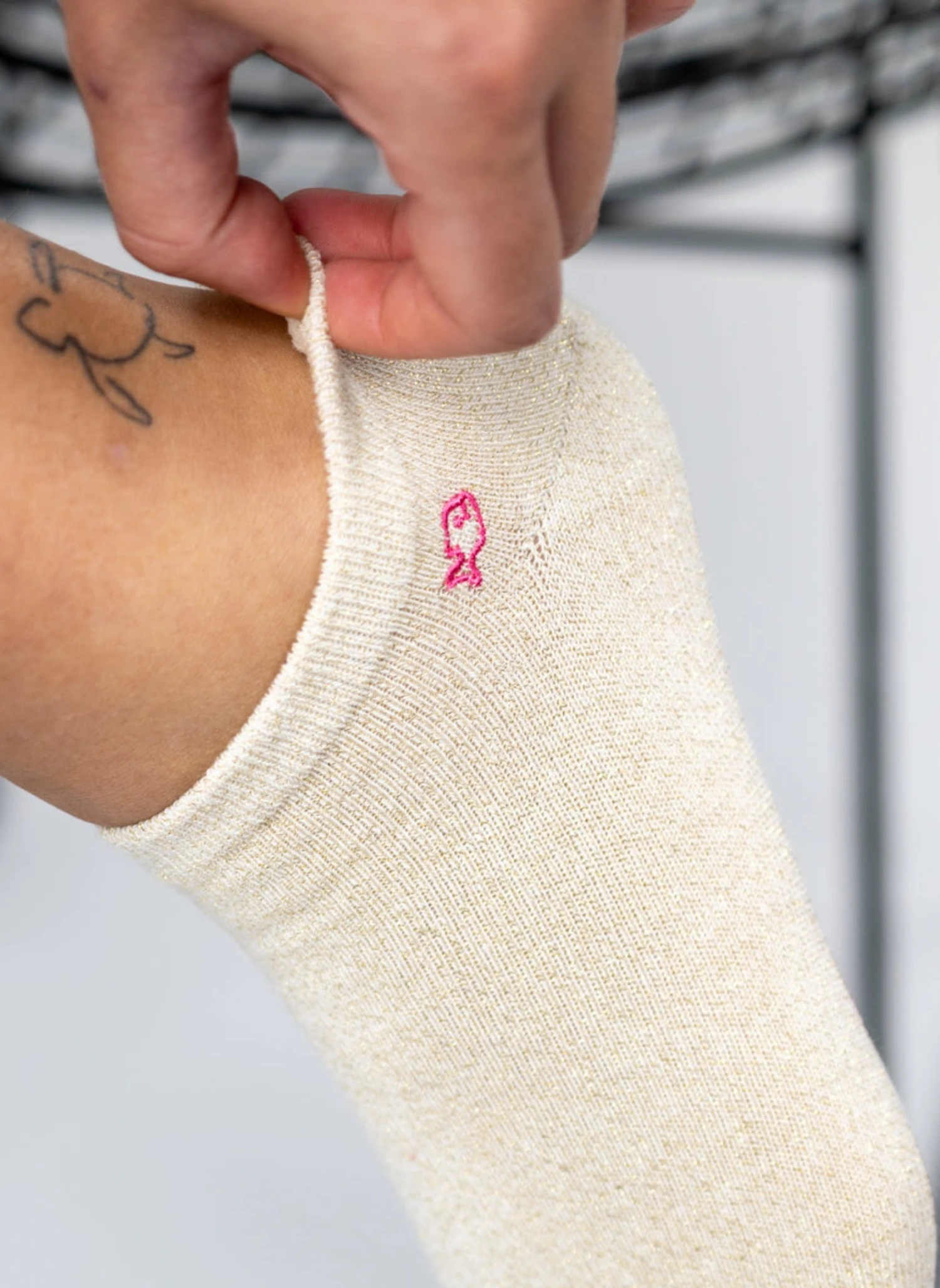 Apportez une touche d’originalité à votre tenue avec ces socquettes pailletées unies beiges. Elles sont en coton peigné et remaillée à la main. Ces socquettes sont confortables et durables.