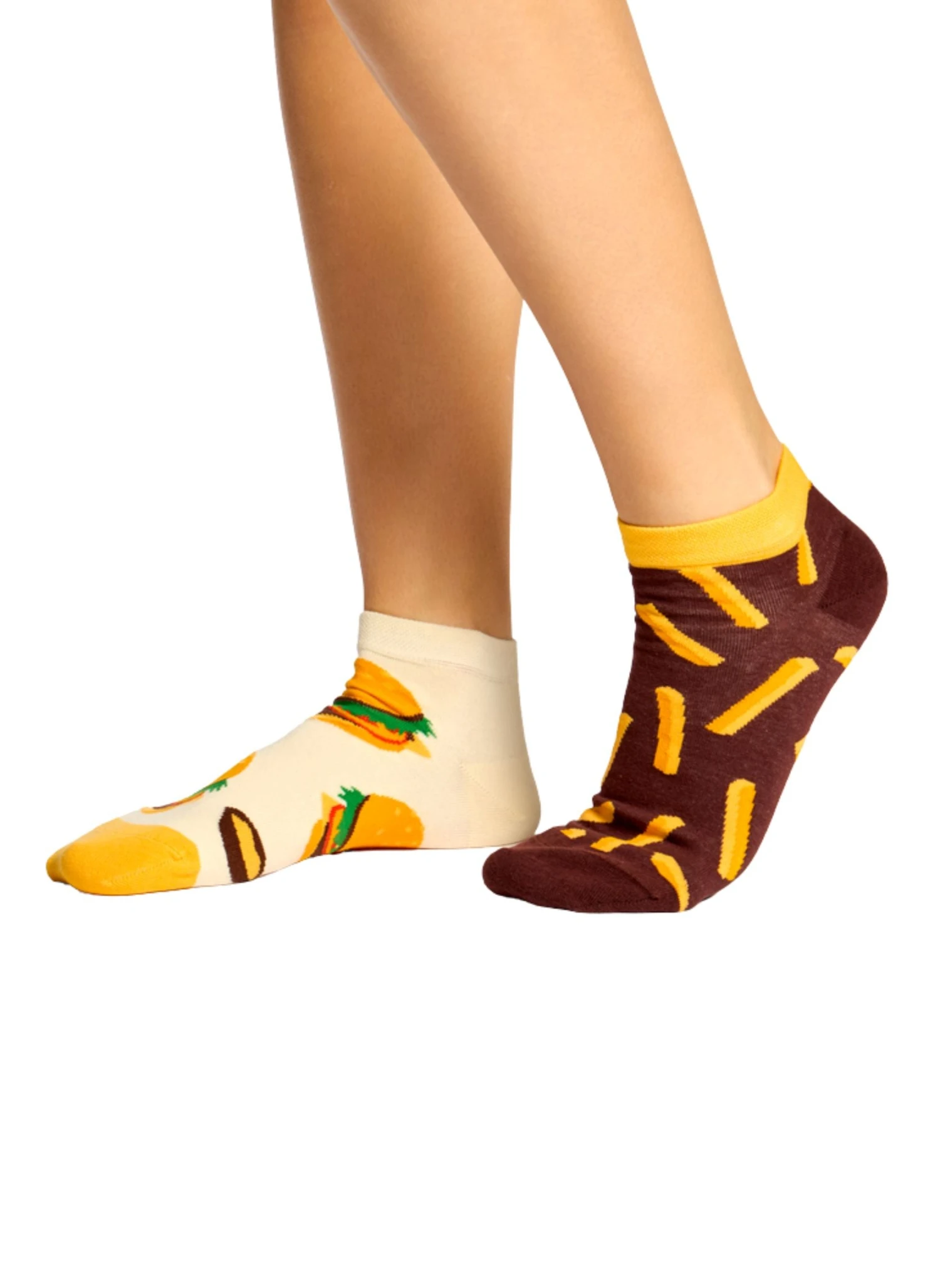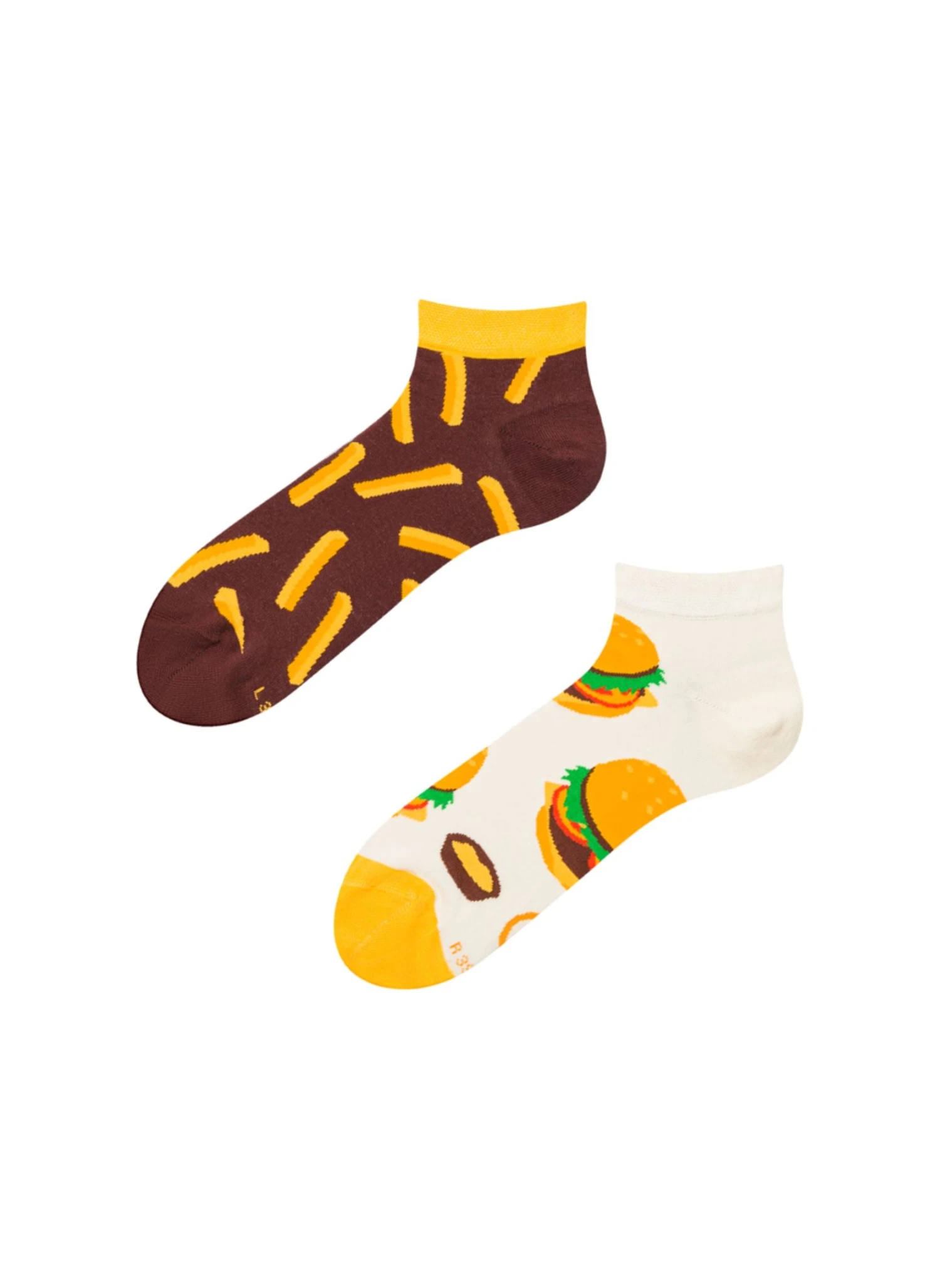 Un burger sur un pied, des frites sur l’autre… On appelle ça de la resto-modation vestimentaire ! Ces socquettes dépareillées burger & frites, c’est le meal deal parfait pour les fans de junk food et de chaussettes funky. Design dépareillé mais inséparable : comme un bon menu XL. Coton moelleux et respirant, sans sauce qui coule.
