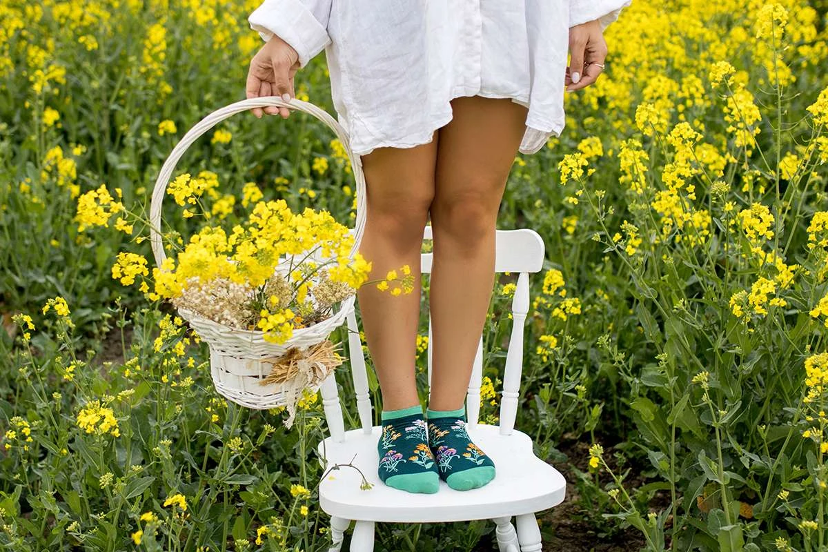 Socquettes Coton Bio Fleurs & Herbes – Vertes