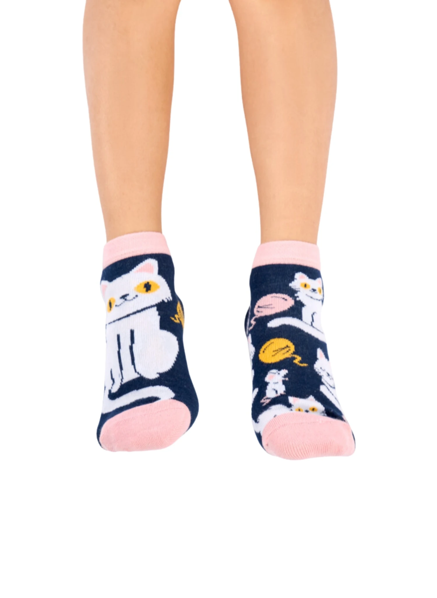 Les socquettes pour enfants avec des motifs de chatons ludiques sont conçues pour égayer les tenues des plus jeunes. Elles présentent des illustrations colorées de chatons joueurs, apportant une touche de fantaisie aux pieds des enfants. Chaque paire intègre des couleurs vives et des dessins charmants pour susciter la curiosité et le sourire, rendant ces socquettes parfaites pour les enfants qui aiment les animaux et les styles amusants.