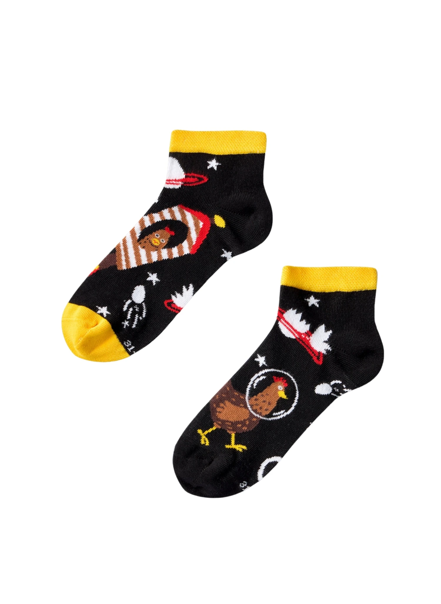 Si Laika, une courageuse chienne, a pu voyager dans l’espace, qui dirait qu’une poule ne pourrait pas, elle aussi, devenir astronaute ? Ce design amusant est désormais disponible sur nos chaussettes fantaisie pour enfants. Assurez le confort et la chaleur de votre enfant avec ces chaussettes en coton douillet. Un cadeau idéal pour éveiller l’imagination des petits explorateurs en herbe