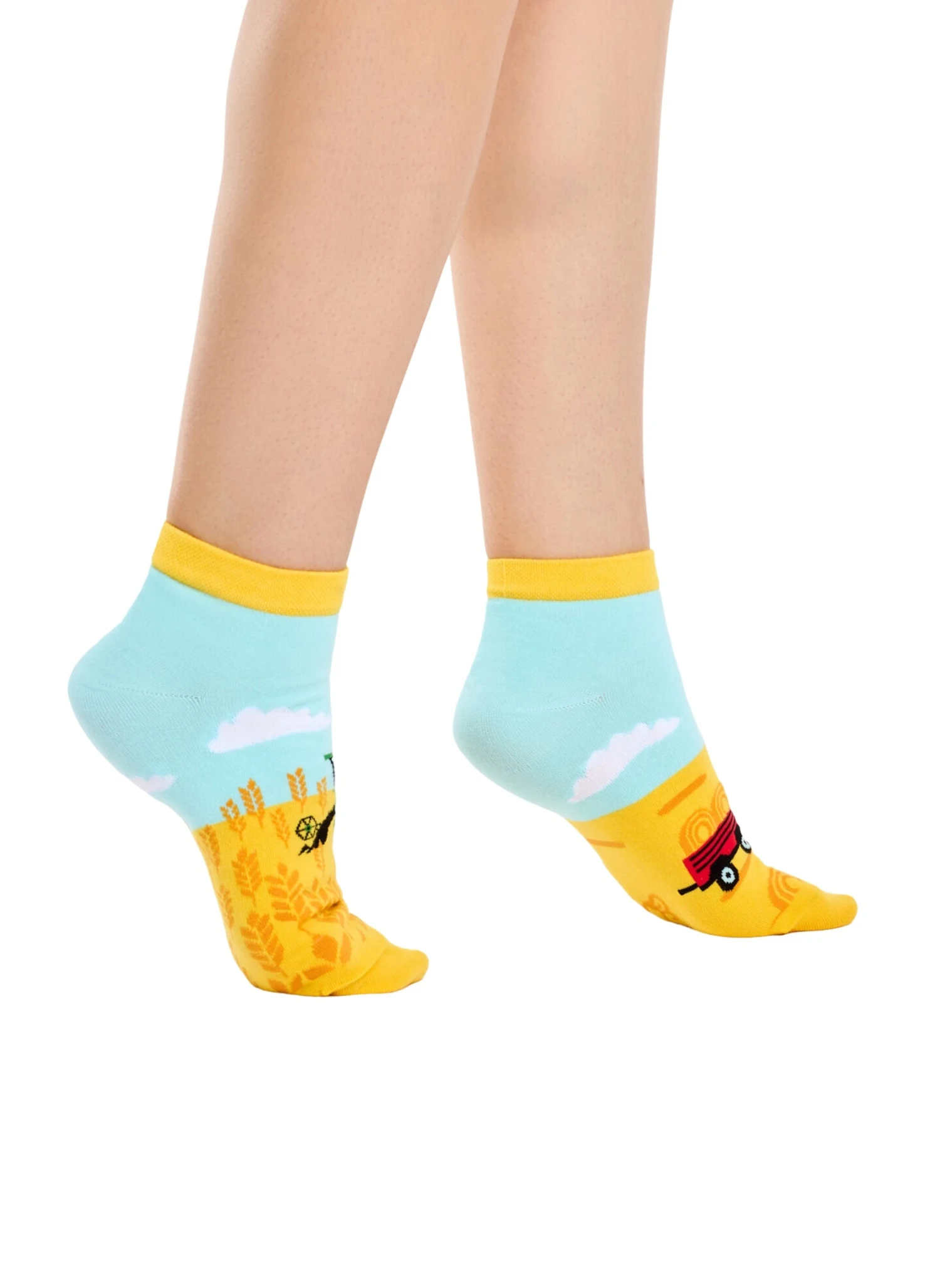 Quel rat des villes n’a pas rêvé de conduire le tracteur du rat des champs ? Si votre enfant est un de ces deux, donnez-lui ces socquettes originales pour lui faire faire les moissons.