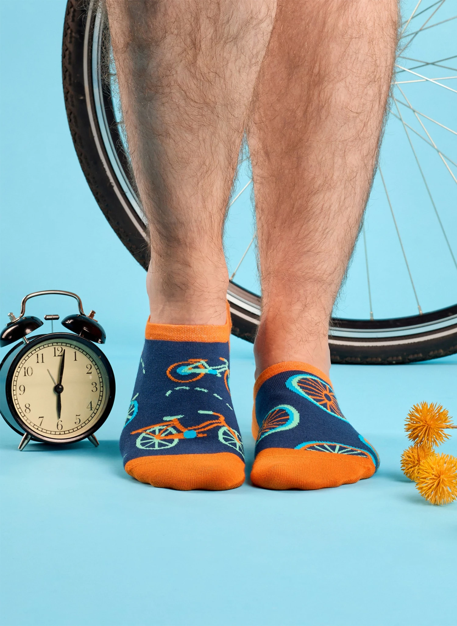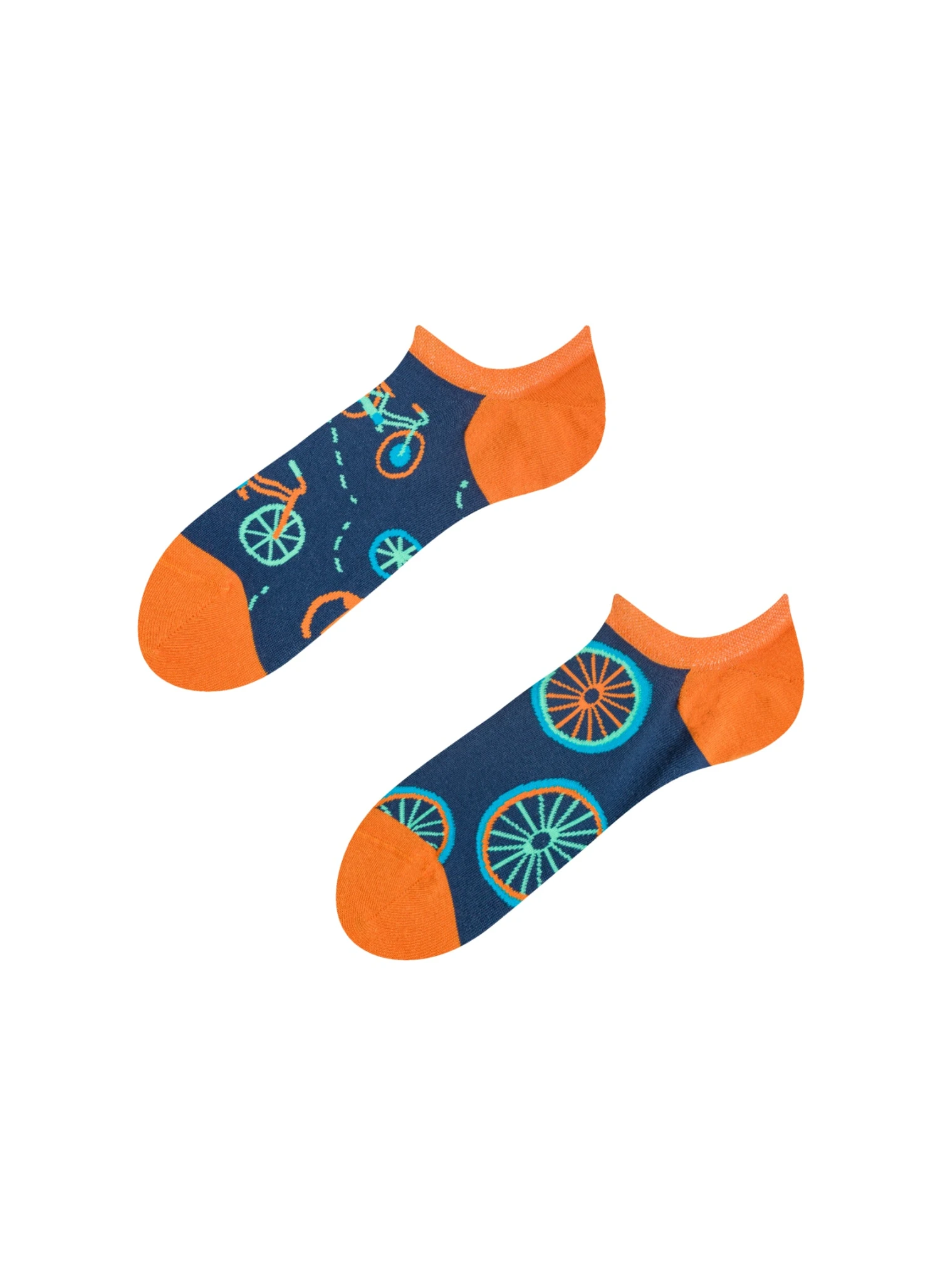 Ajoutez une touche de fun à votre tenue avec ces socquettes invisibles Bicyclette Orange ! Conçues pour allier style et discrétion, elles se glissent parfaitement dans vos baskets tout en affichant un design ludique et coloré. Leur motif de vélos et de roues stylisées sur fond bleu marine, agrémenté de pointes orange vives, donne un look dynamique et plein d’énergie.