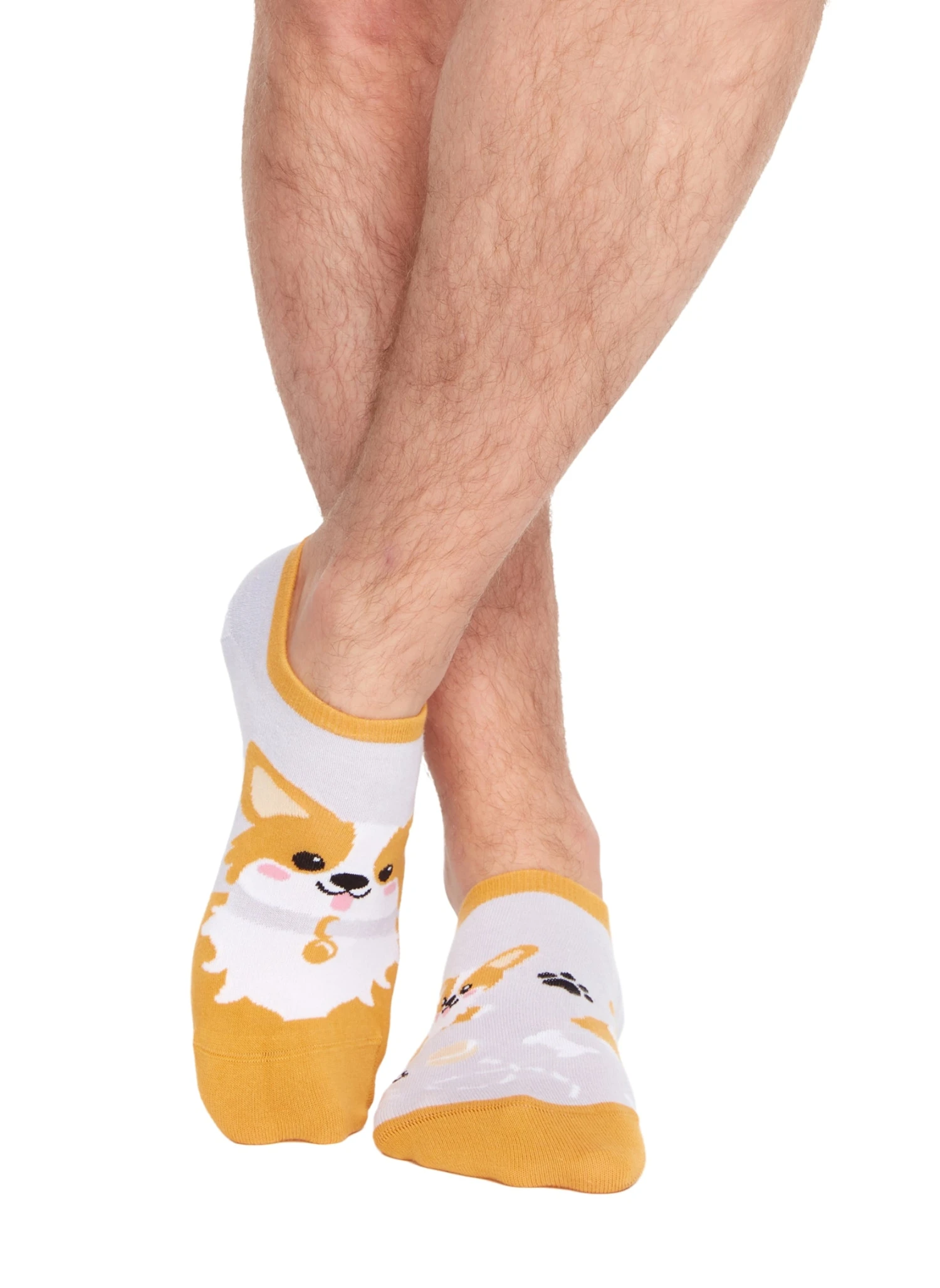 Qui n’aime pas les corgis avec leurs grandes oreilles et leurs courtes pattes. Ces socquettes basses pour baskets seraient probablement trop longues pour ce chien. Mais elles s’adapteront parfaitement à vos pieds et égayeront votre journée.