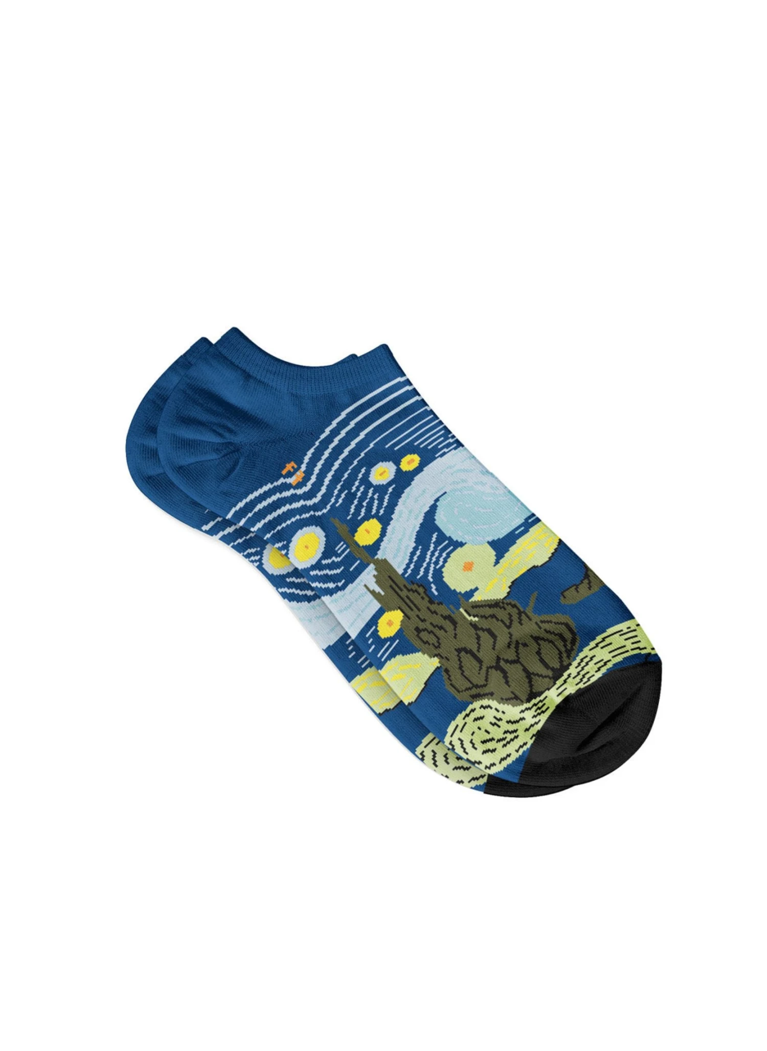 Retrouvez sur ces socquettes le tableau de Van Gogh, La nuit étoilée, peint en 1889 depuis sa chambre à l’asile psychiatrique de Saint-Remy. L’artiste se remettait de son amputation de l’oreille.