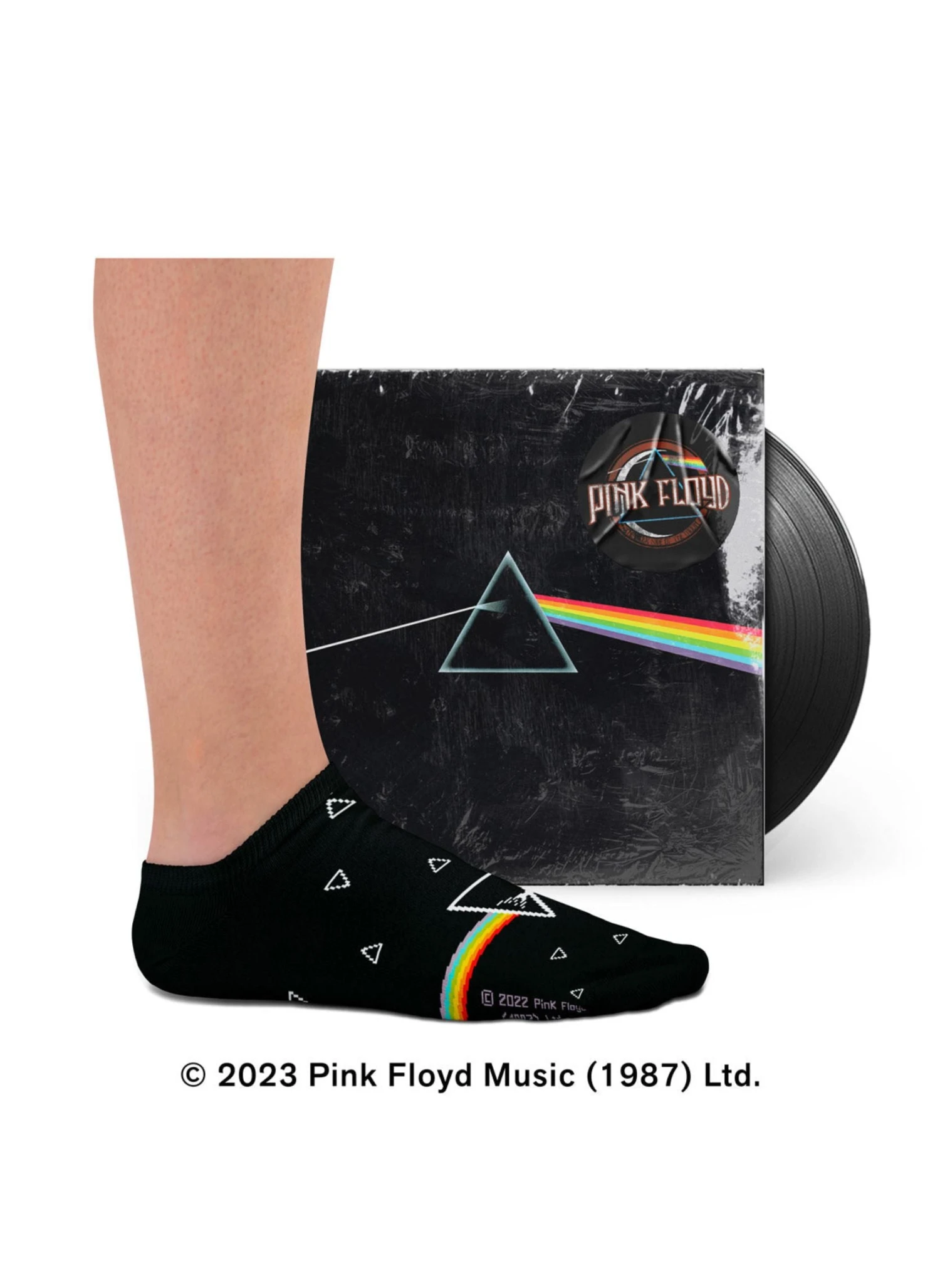 Retrouvez la pochette de l’emblématique album Dark Side of the Moon des Pink Floyd sur ces socquettes de qualité, sans coutures, conçues et filées au Portugal. Licence officielle.