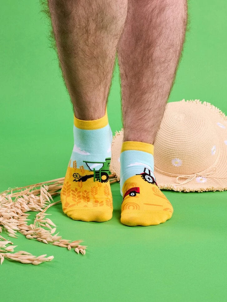 Quel rat des villes n’a pas rêvé de conduire le tracteur du rat des champs ? Si vous êtes un de ces deux, enfilez ces socquettes originales pour faire les moissons.